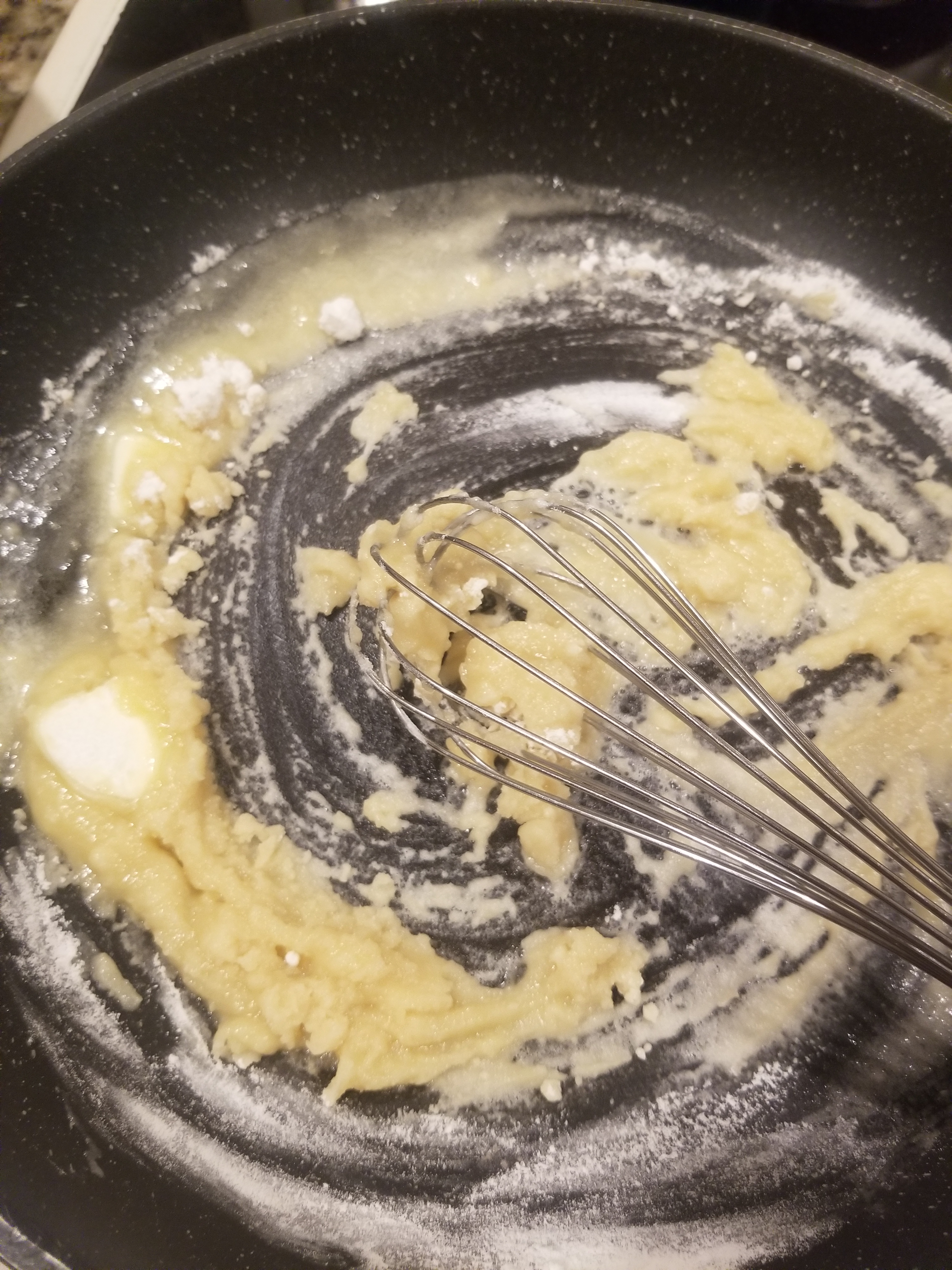 First melt the 4 Tablespoons of butter in a large skillet ….whisk in flour….keep whisking till it looks like it is completely melted and comes together.