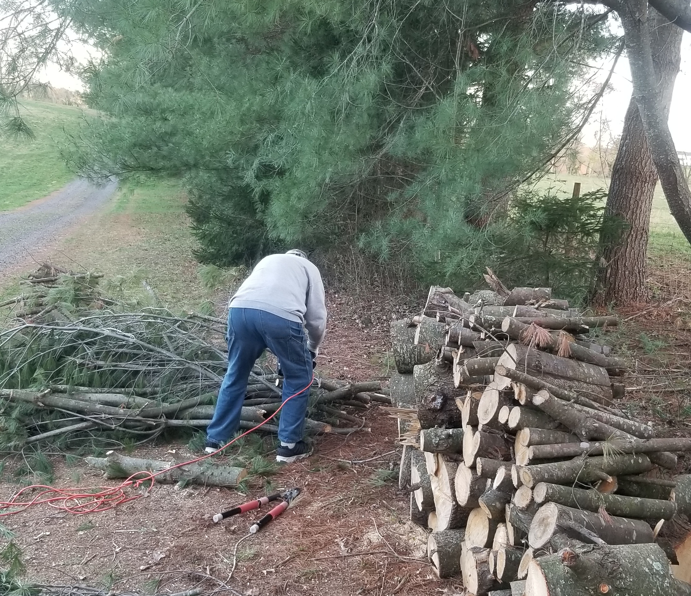 Dad is preparing to use his generator. He uses an electric chainsaw. Dad is a working machine…and did I say he is 94 years old??? AMAZING!!! I want to be like him when I grow up!!