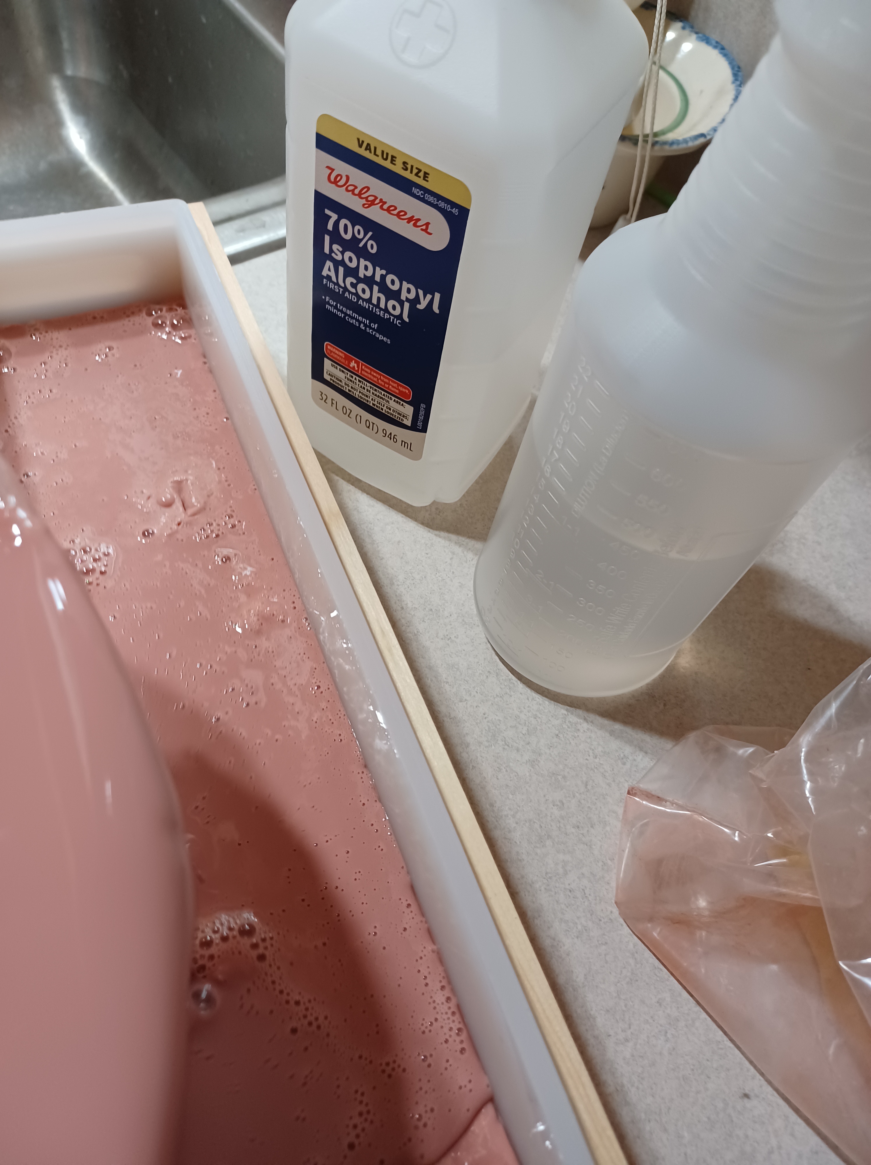 My process was to melt the soap chunks in the microwave, or you can use a double boiler. Microwave takes about 4 minutes or so, you just monitor the mixture till it is melted. Then you get to the fun part! I blended in rose clay, it gave the soap a beautiful pink color then I also added rose mica powder.