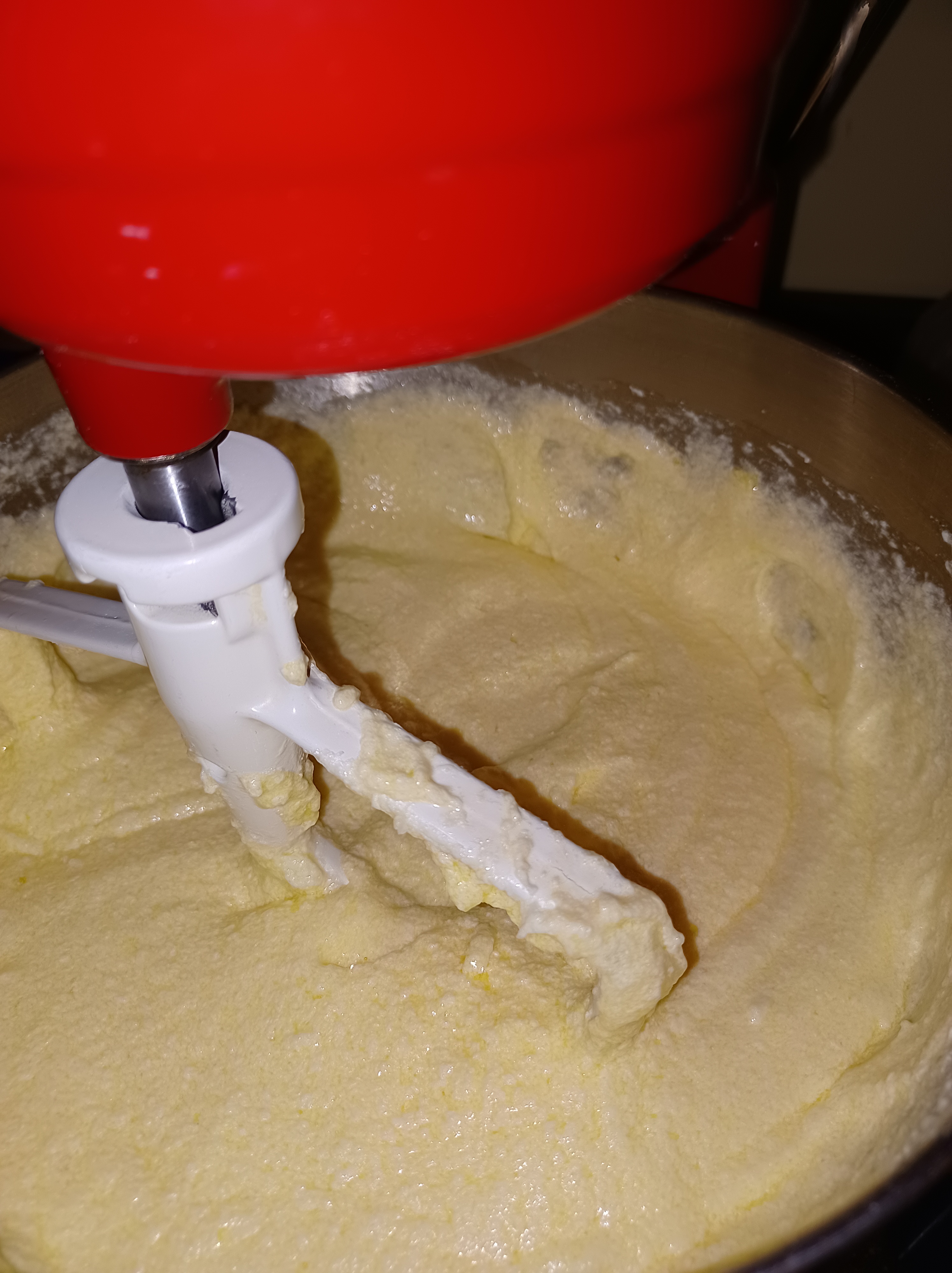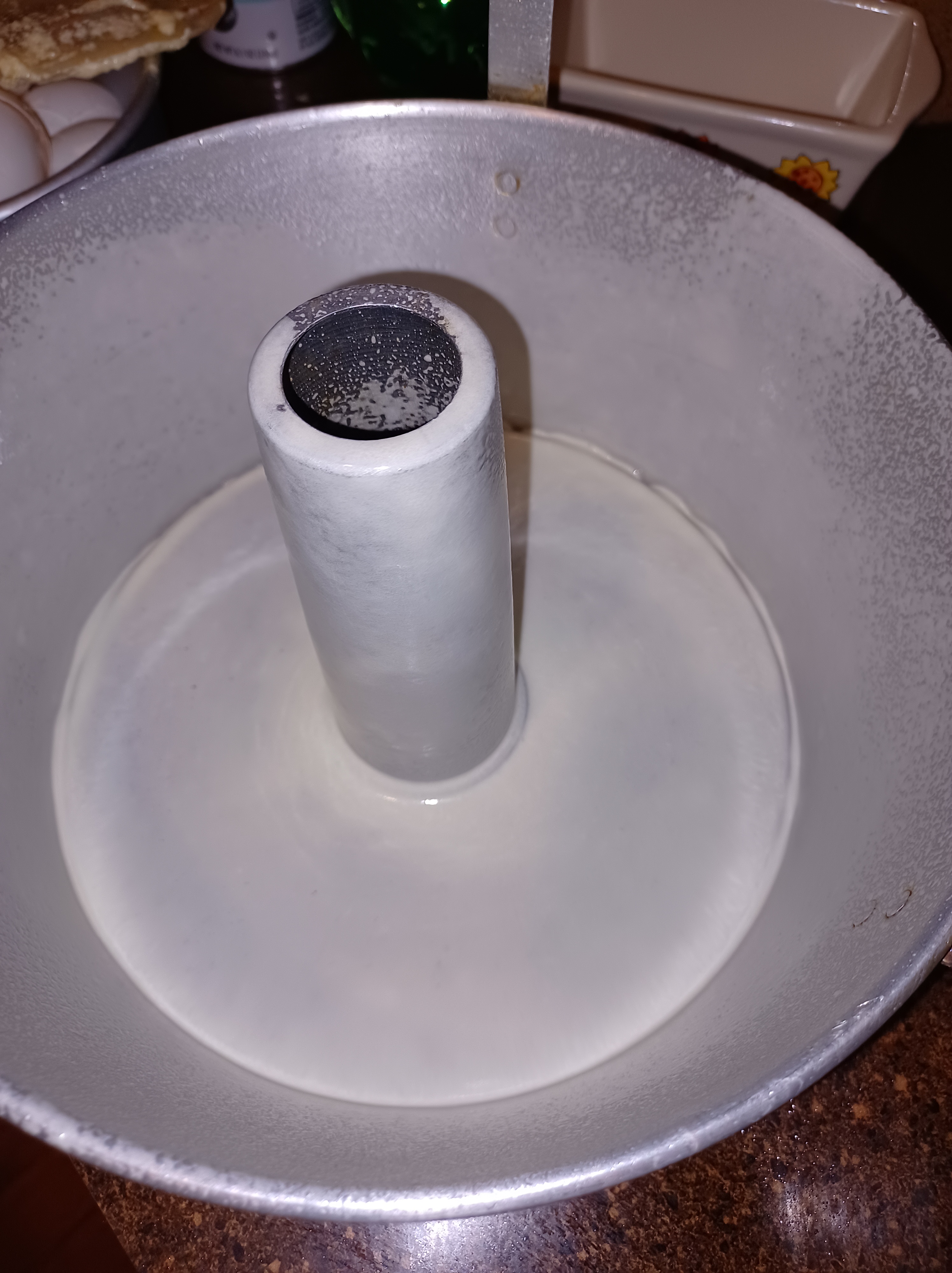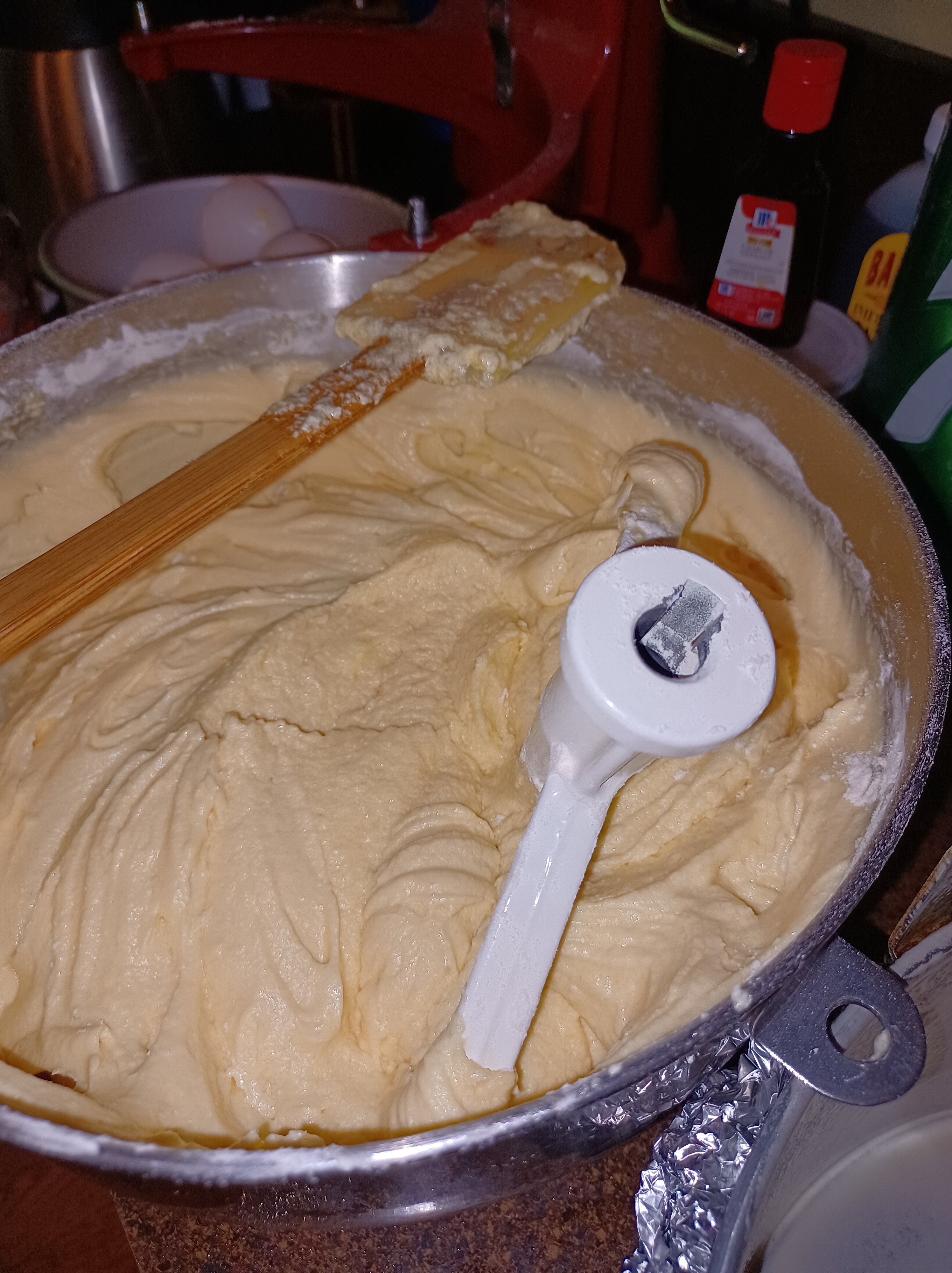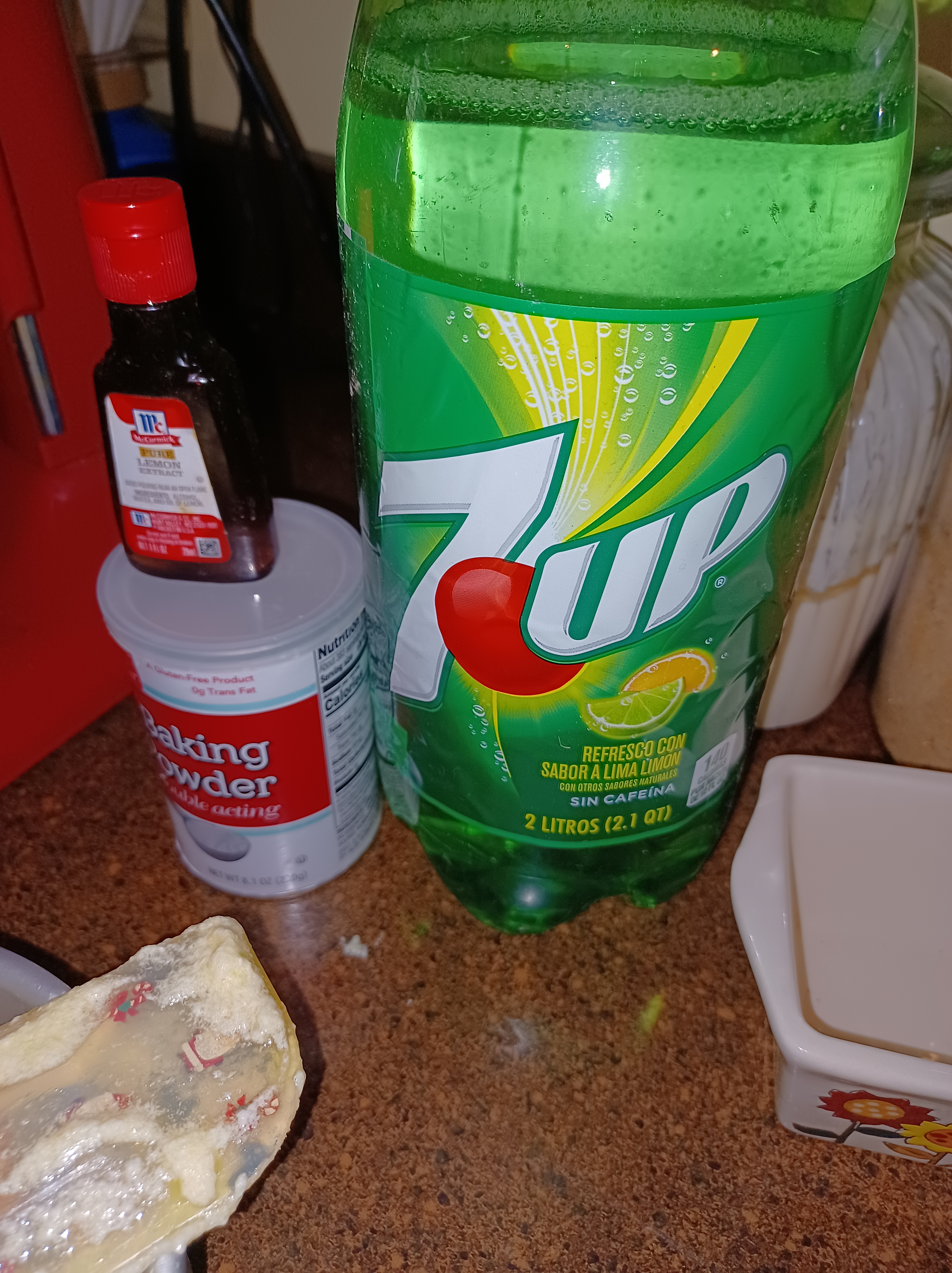Place butter and sugar in your mixer bowl. Whip till light and fluffy. Now add the eggs, whip them in. Now add the 7 up, baking powder, vanilla and lemon extract. Blend well. Now it’s time to add the flour. Mix it on low till it is incorporated. Now you are ready for the pan.