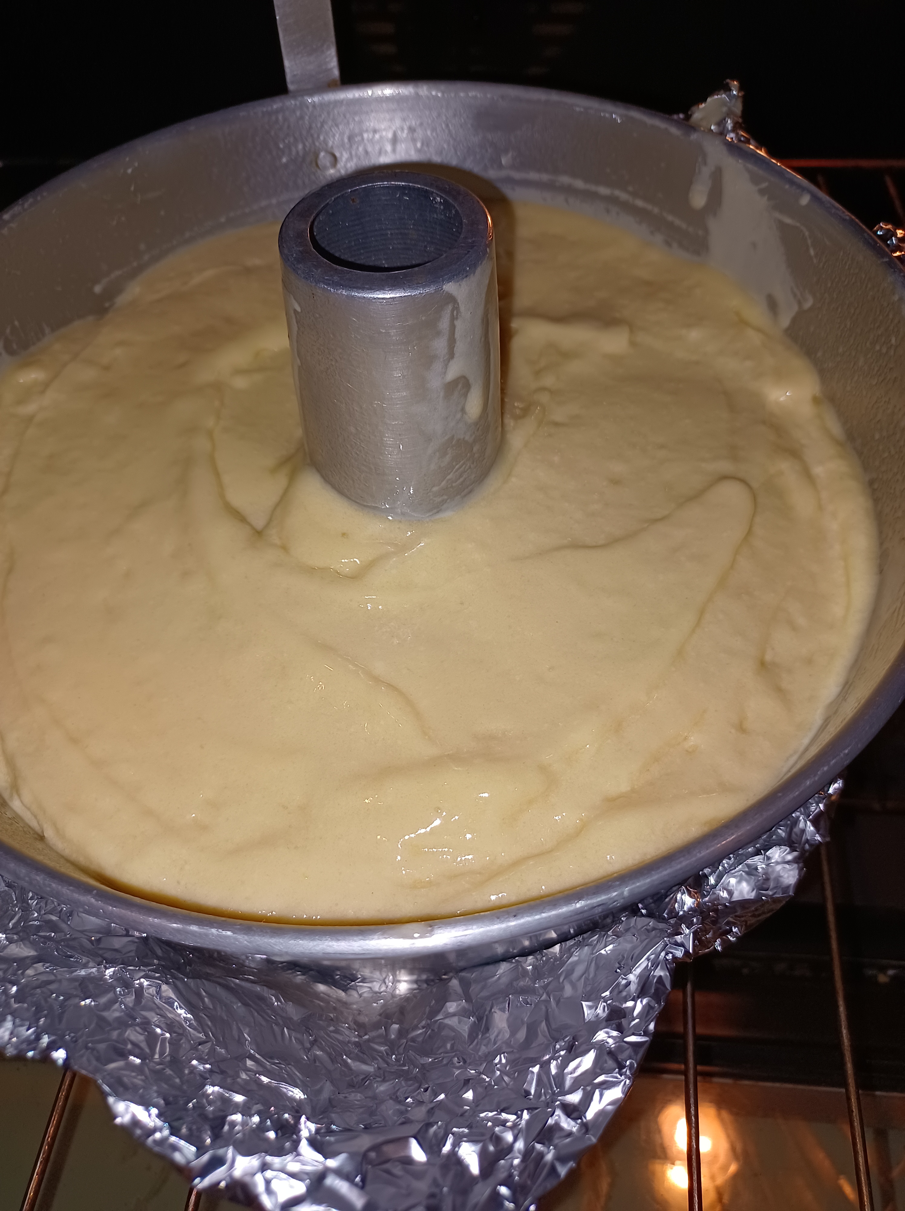 Now place the cake into a preheated 325 oven. Bake for 1 1/2 hours or till a skewer comes out clean.