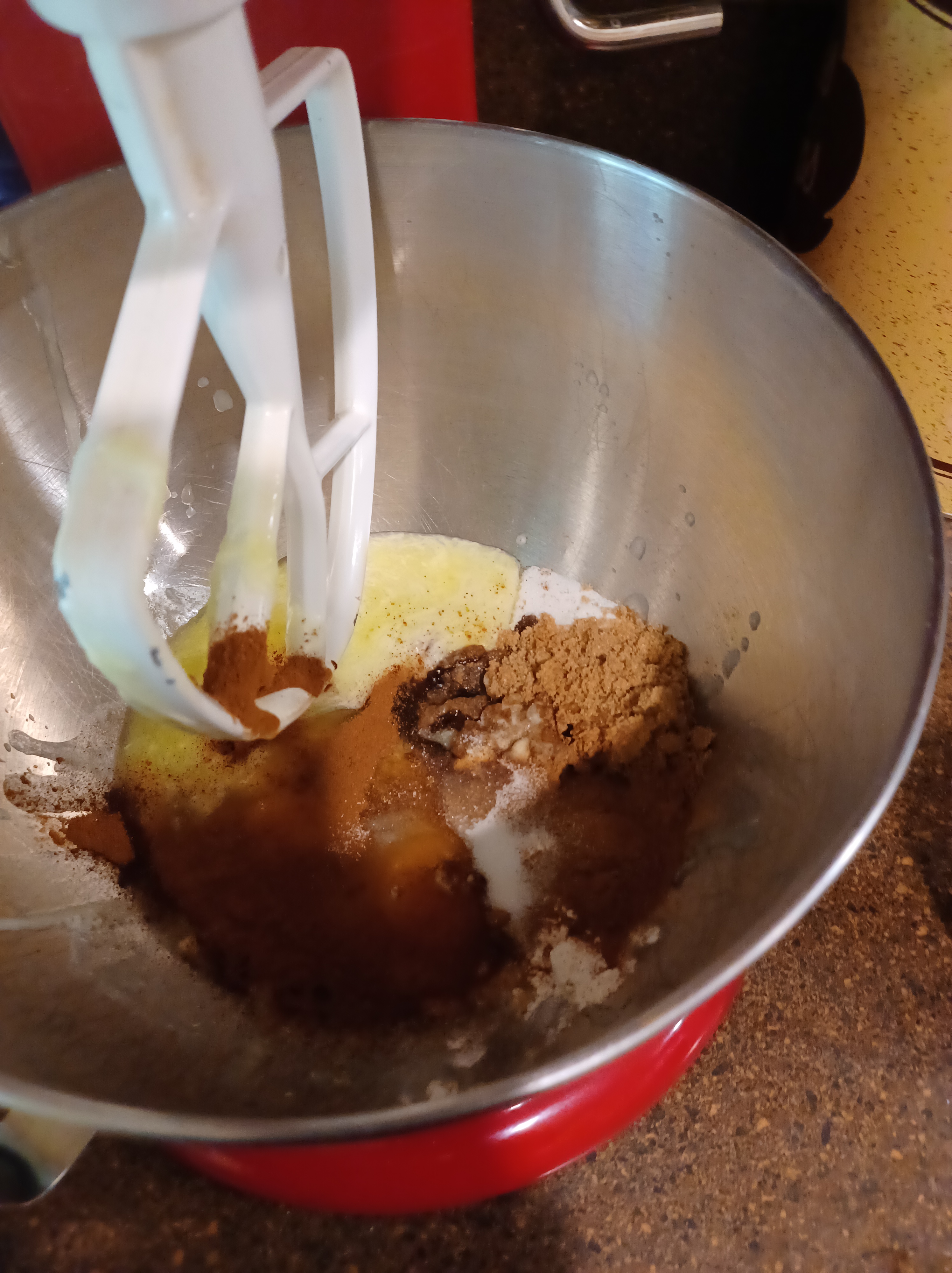 Now make the streusel. Place all streusel ingredients in a deep bowl. Now work with your hands till you have a lumpy streusel. Now set aside.