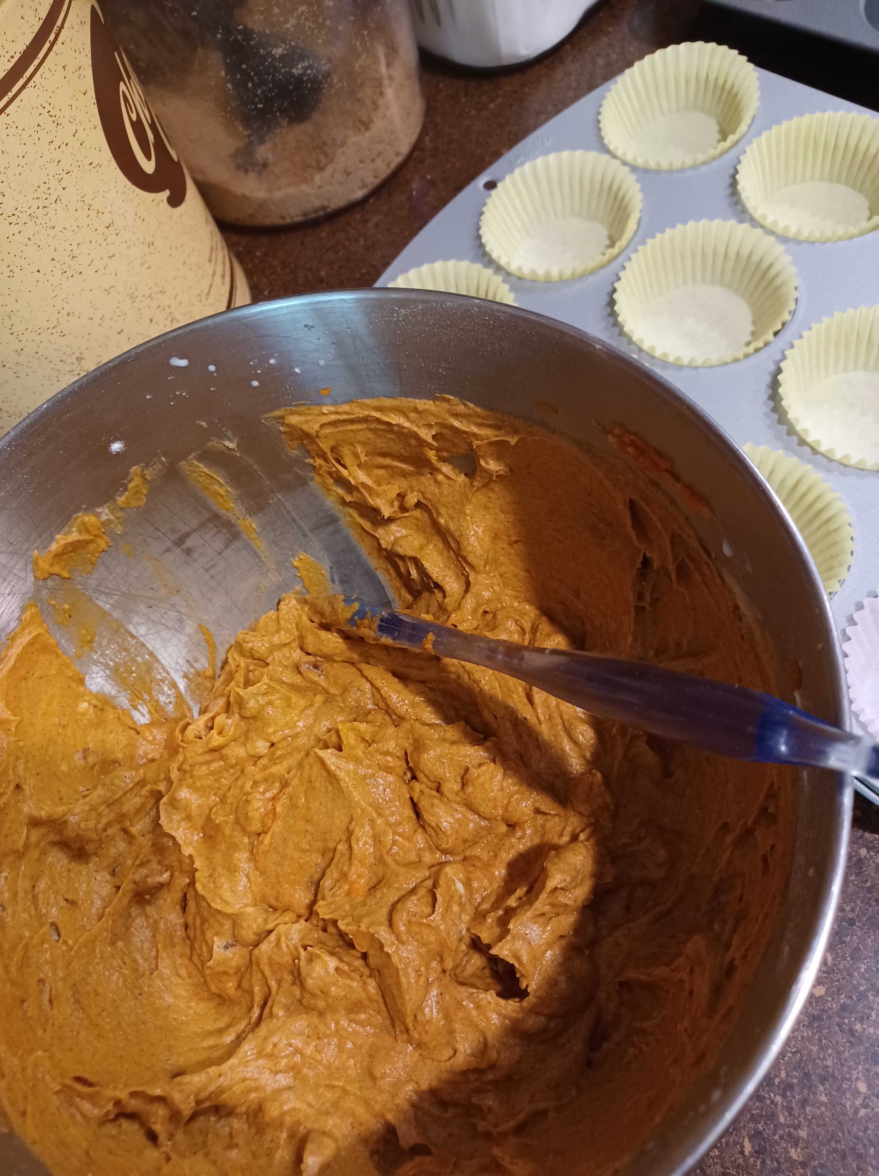Place all the muffin ingredients in your mixer bowl, blend till mixed well. Now add the dates and pecans.