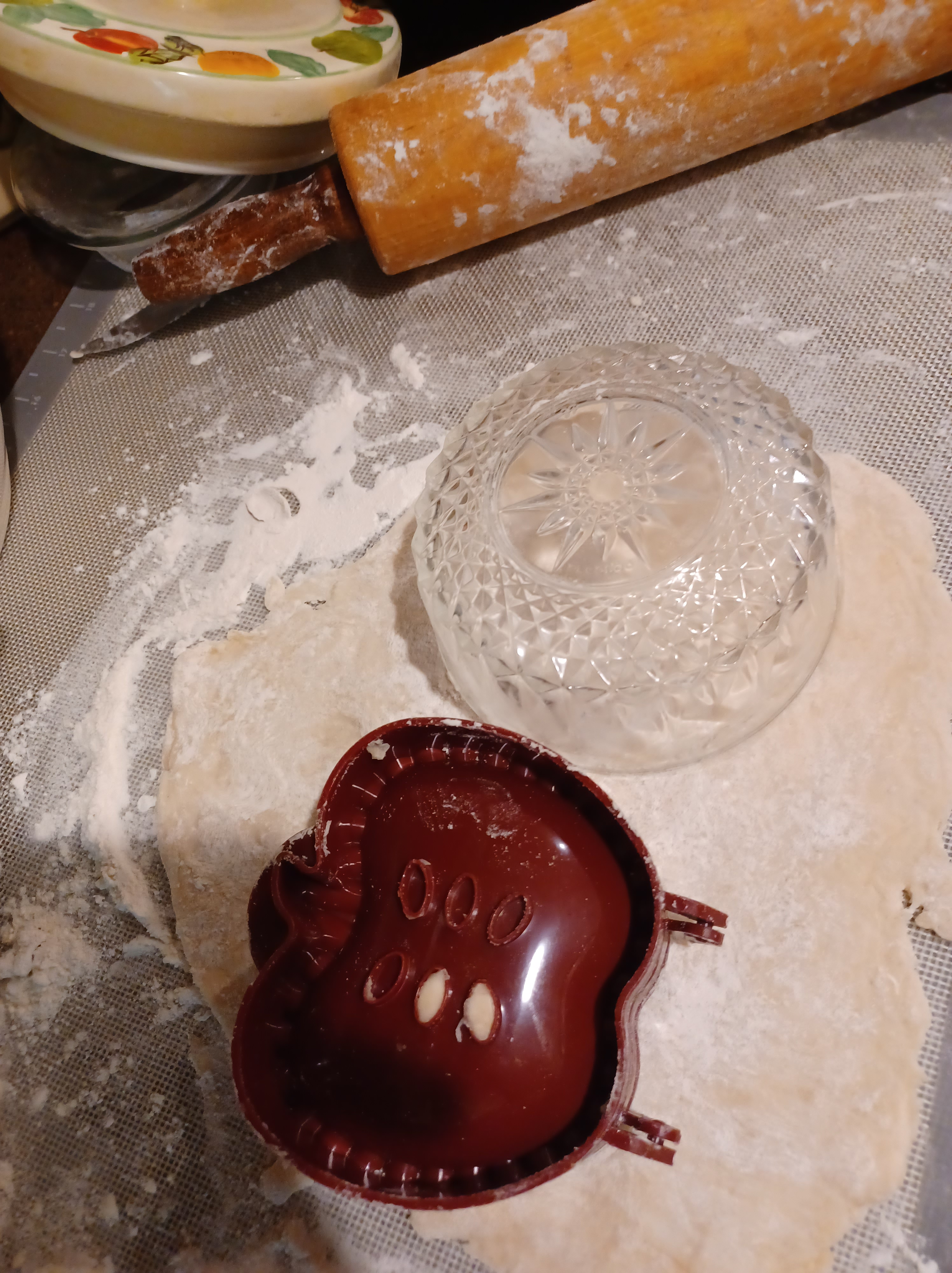 I made my own pie dough, but you could easily use ready-made refrigerated crusts for this project, you would need to roll them out a little to start.