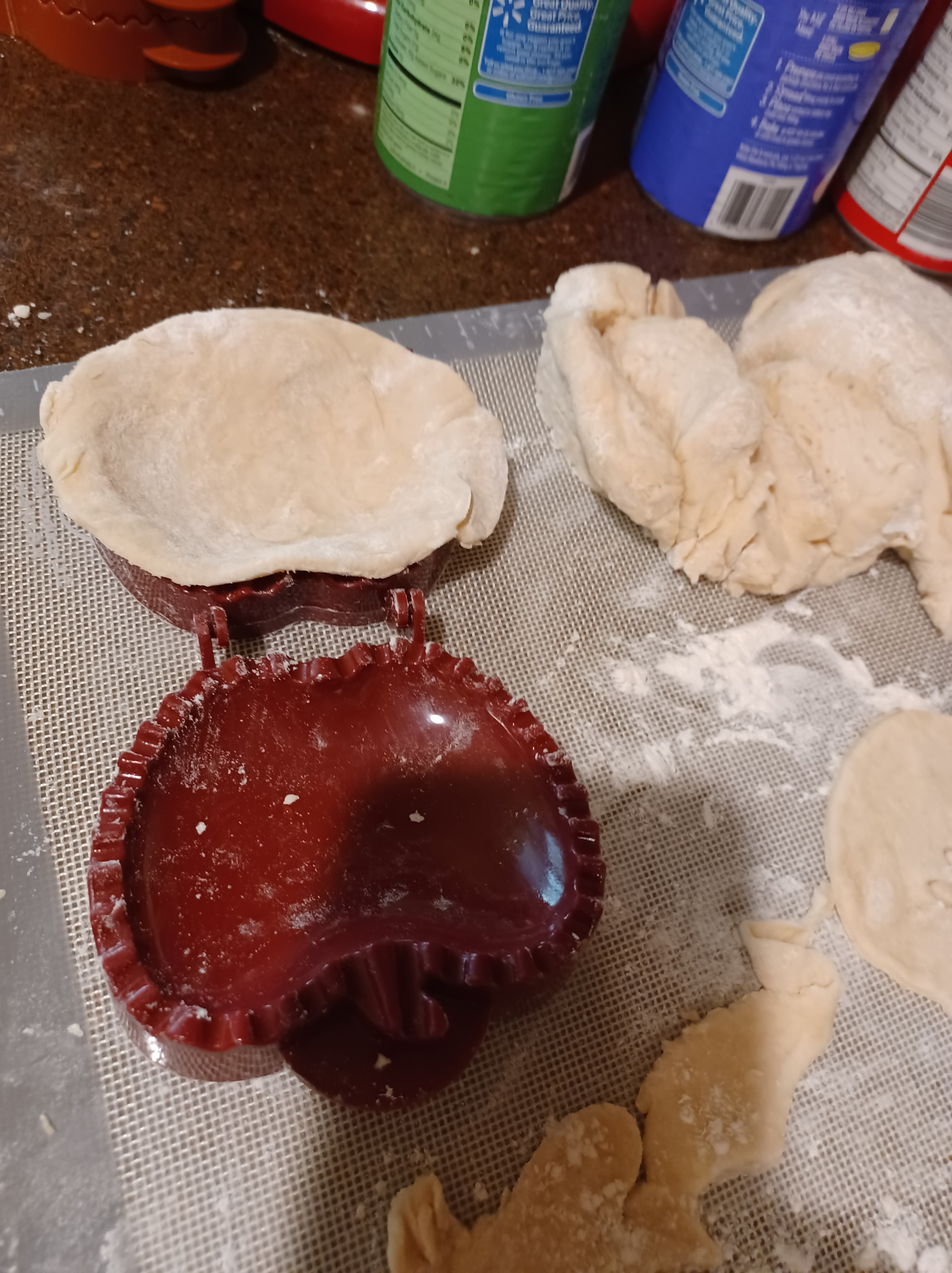 I absolutely love decorative baking. I had seen hand pie molds in a variety of shapes, ordered them, then I baked them! They can be a little fussy, but I figured out a few things, so it was pretty good after that! For these little pies I decided to use canned pie fillings and that worked out pretty well.