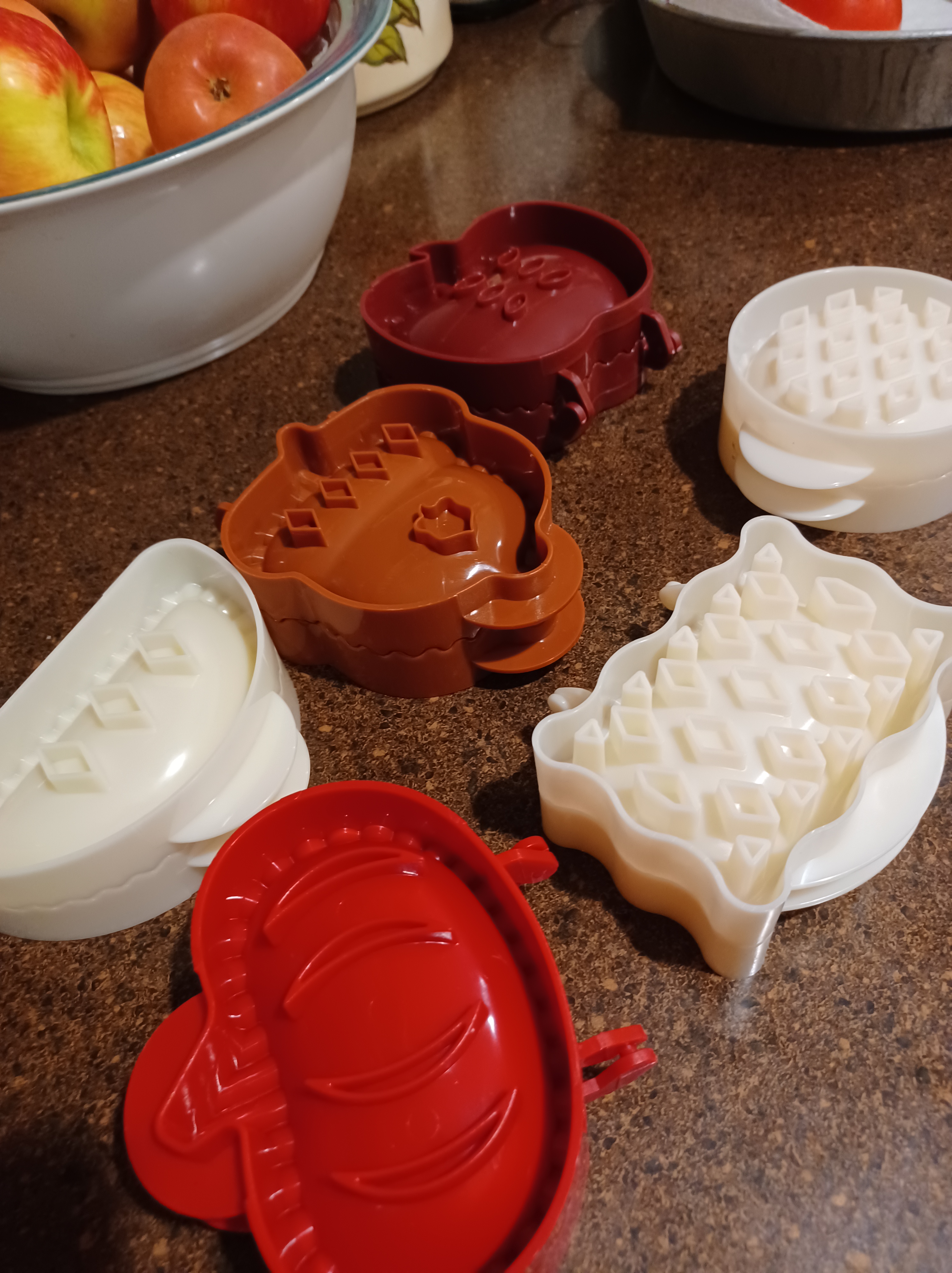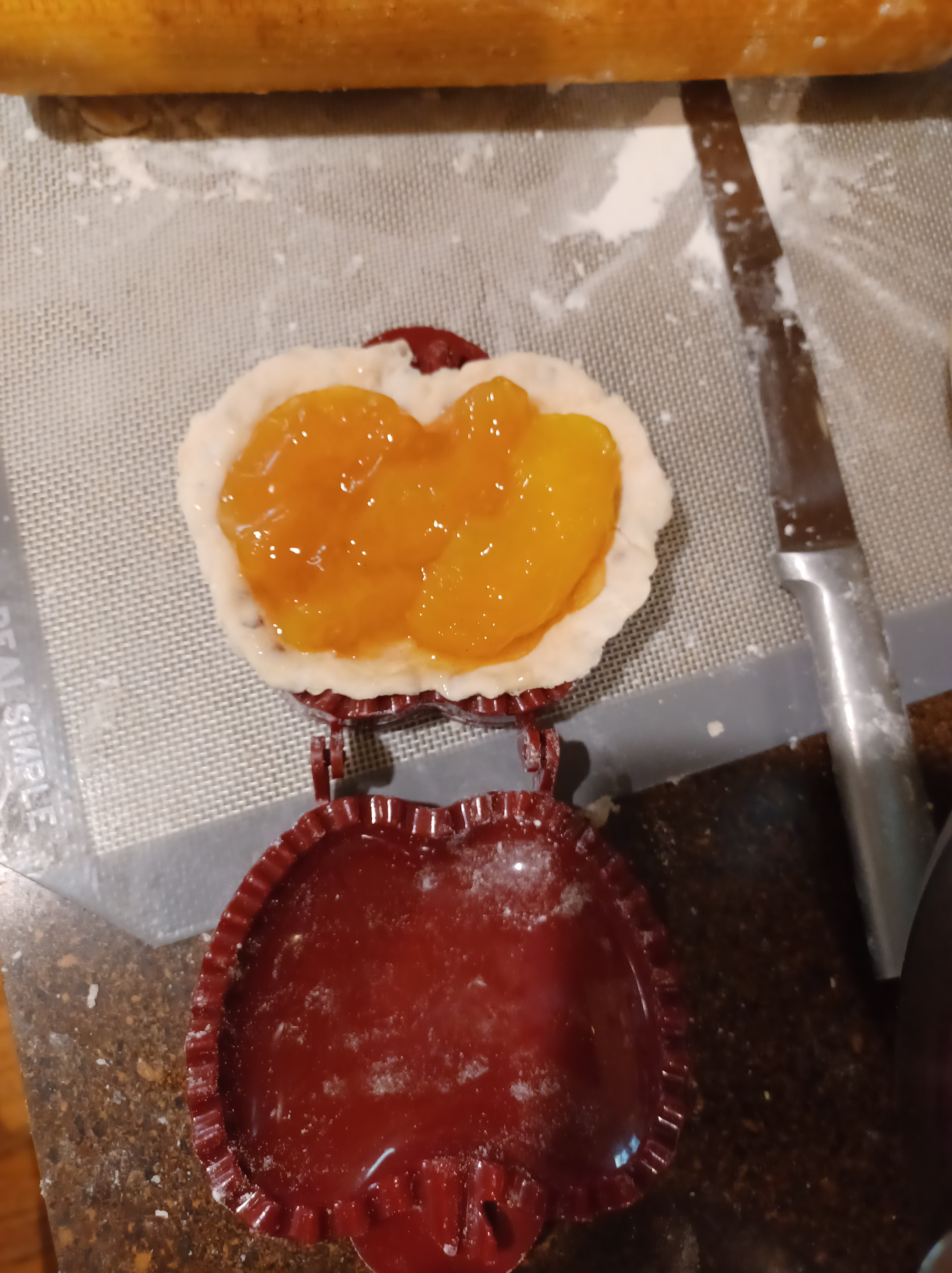 Cut out your desired shape, line your tart maker, add filling of your choice. It only takes a tablespoon or 2 to fill the shapes. Each shape needs a different amount, so put what will fit, without over filling each tart.