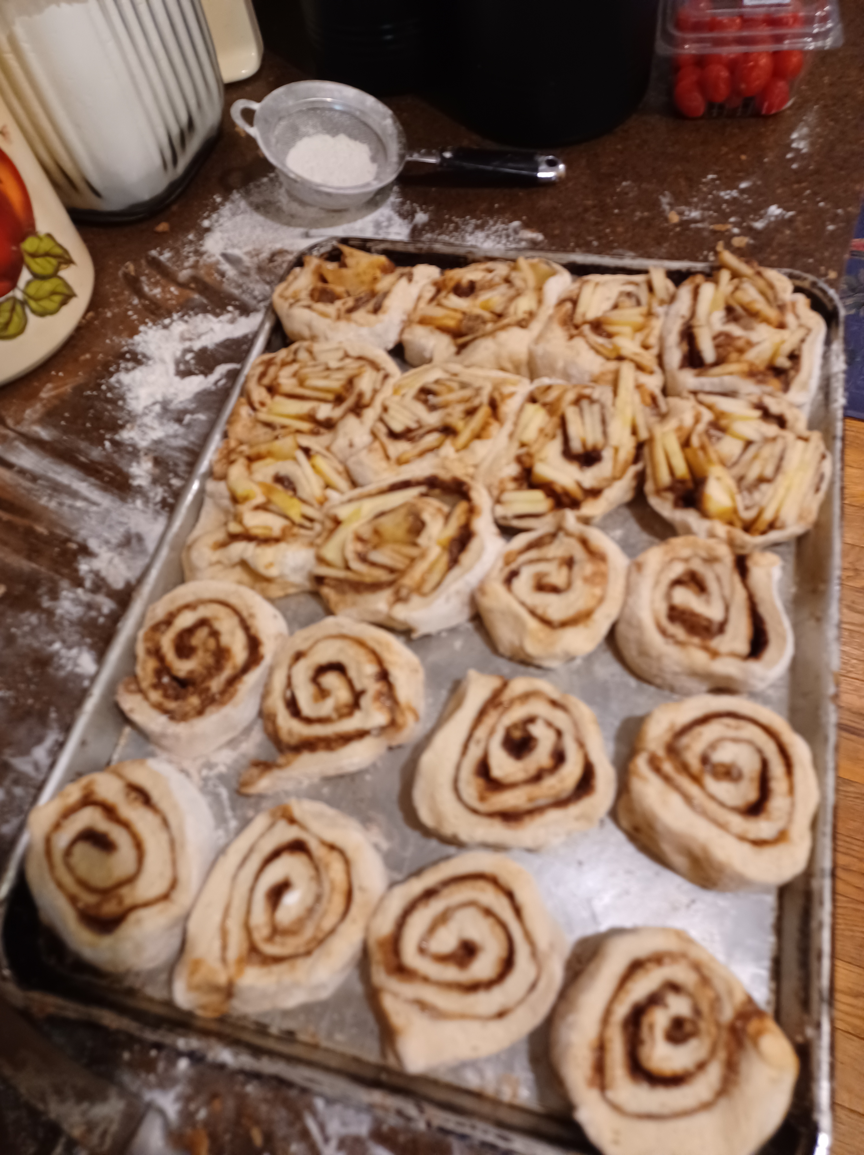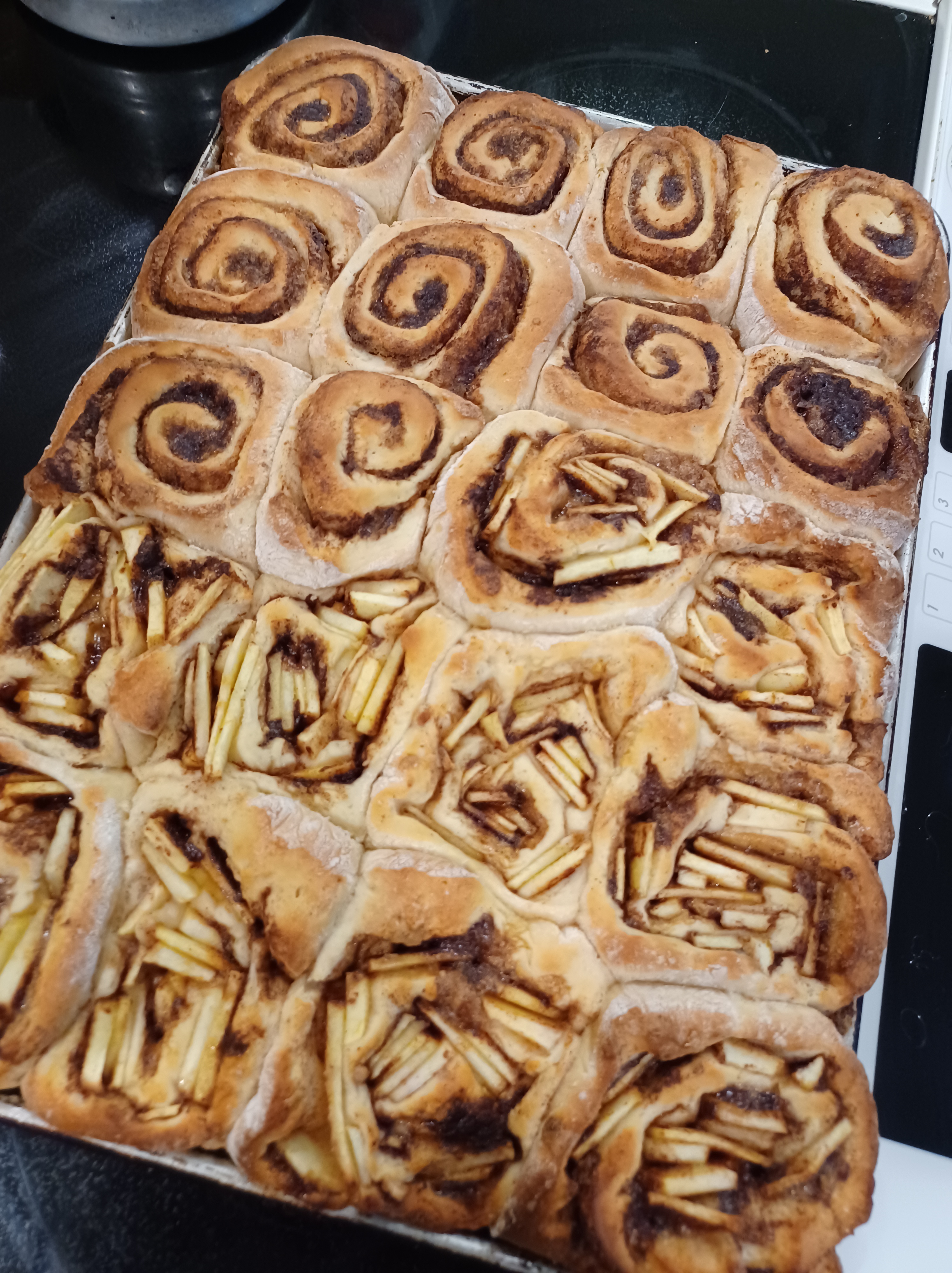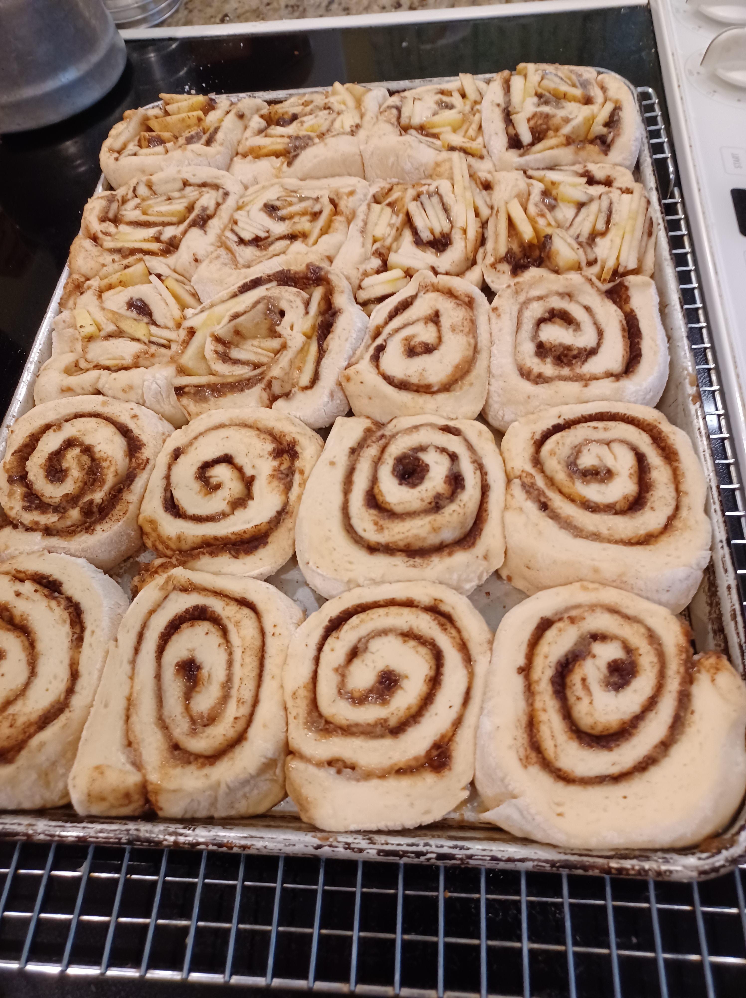 - 4 or 5 large apples peeled and sliced (This step is only needed if you want to make both apple and regular cinnamon rolls)