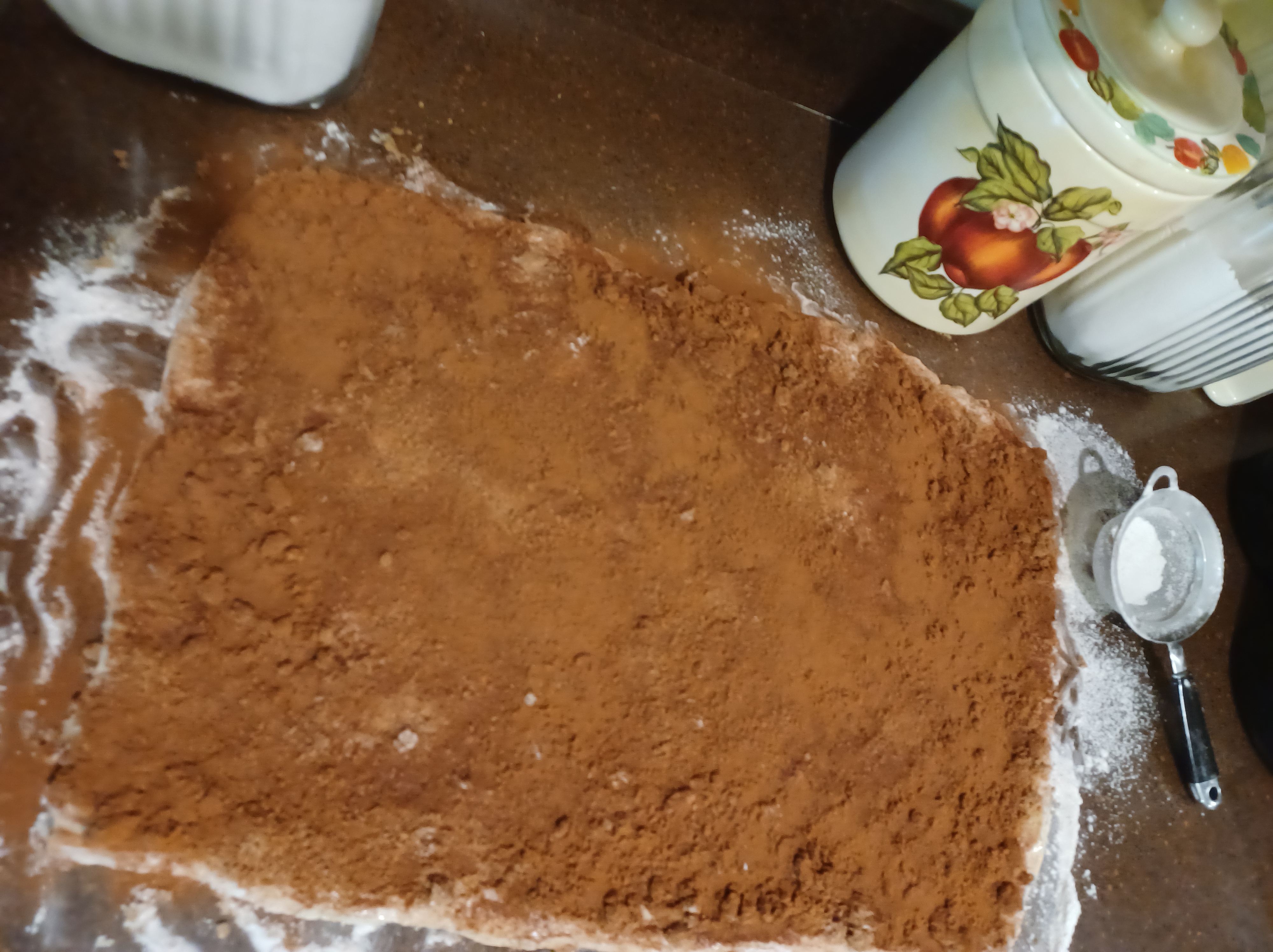 Now spread with the very soft butter, then brown sugar, then cinnamon.