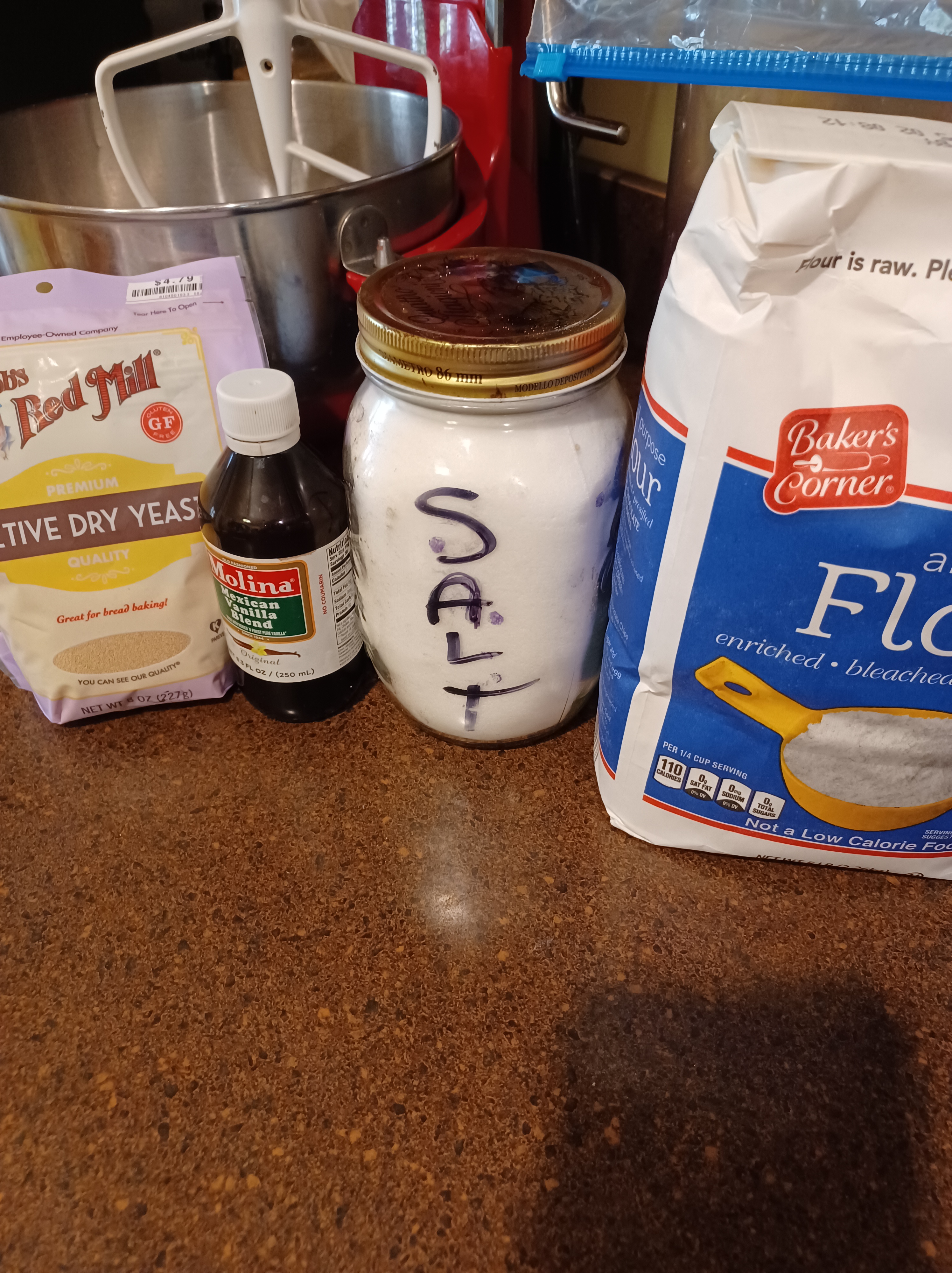 - 2 tablespoons yeast (if using packs of yeast, 2 packs will be fine)