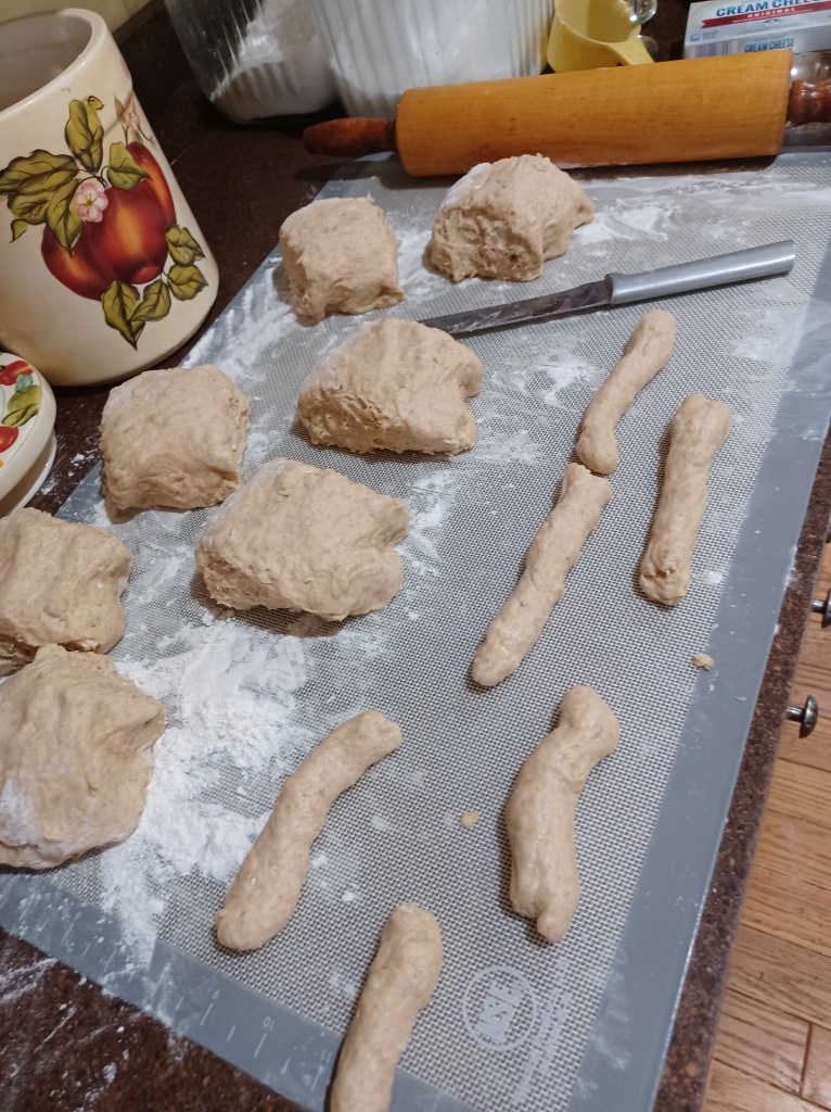 Now bake in a 350 oven for about 12-15 minutes. I use a convection oven, so I always go for the 12-minute mark, then decide if they need another 2 or 3 minutes. The rolls take about 20 minutes to bake, I let them keep rising while baking off the sticks, then bake the rolls.