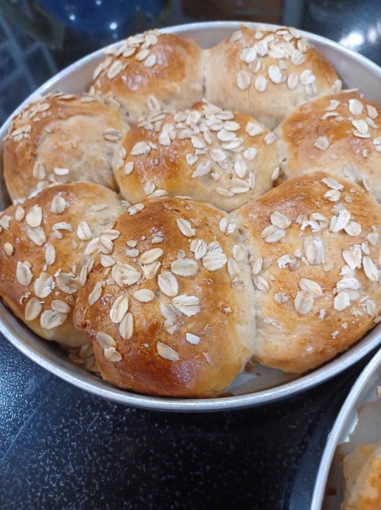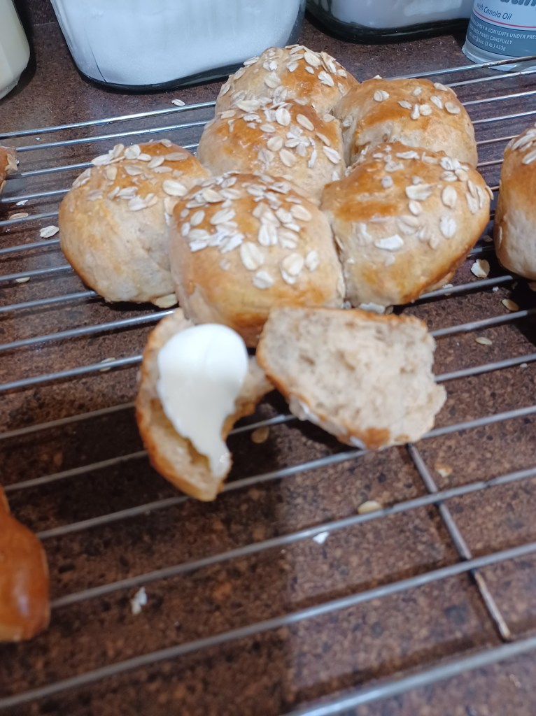 - 1 cup oats (plus some to sprinkle on the rolls)