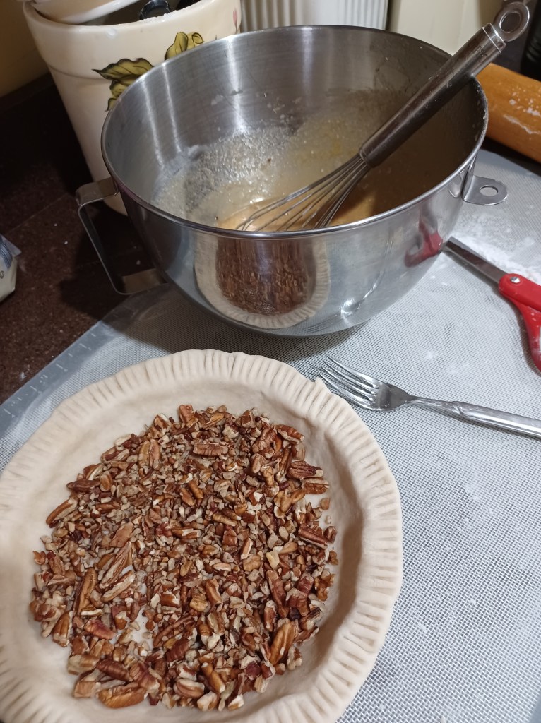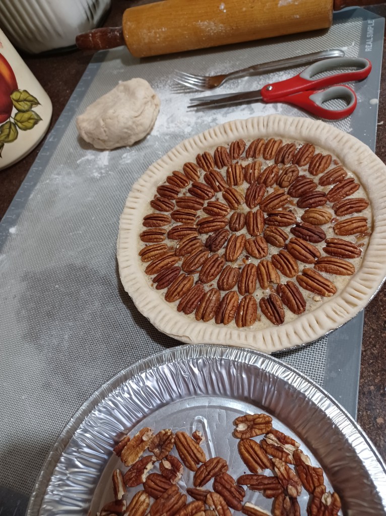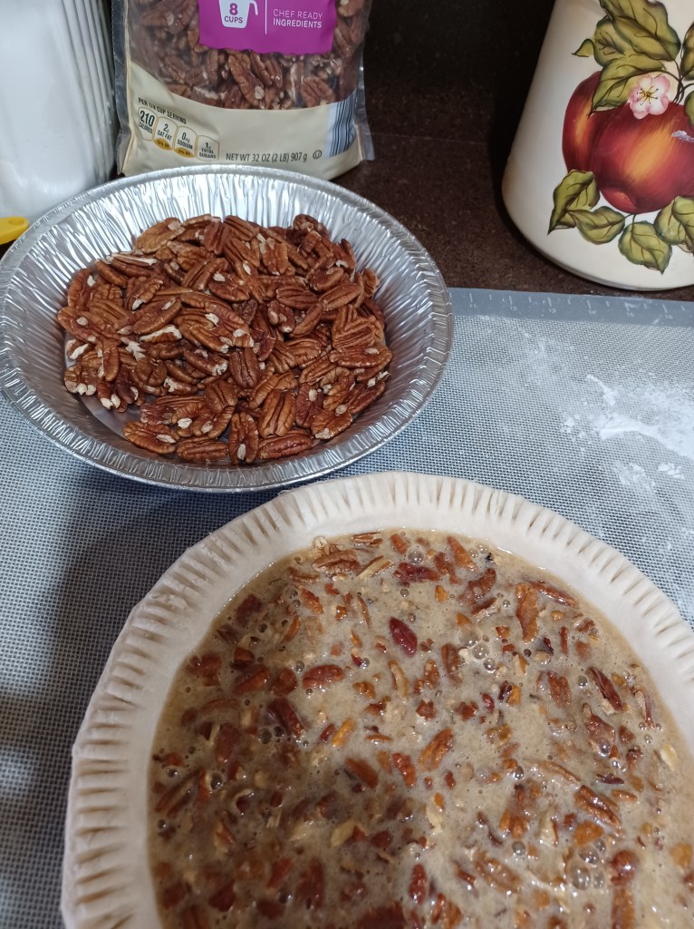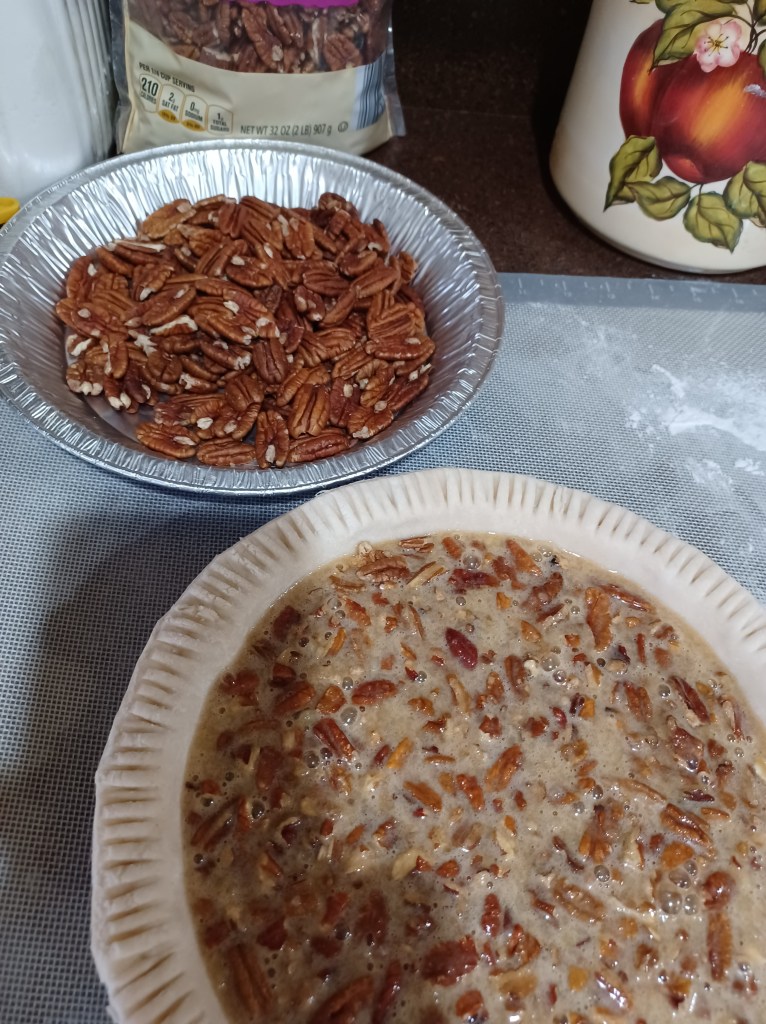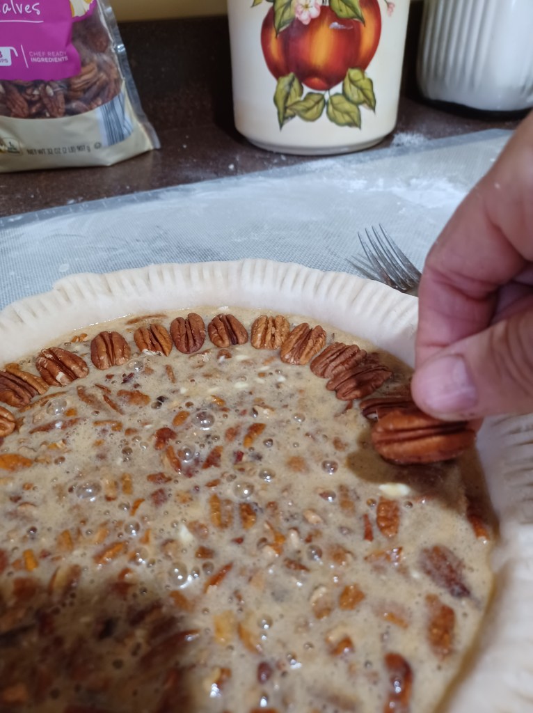 We love pecan pie! I like to make it chock full of pecans. I use chopped pecans in the pie then whole pecans to fill up the top. Pecan pie is easy to make and delicious!