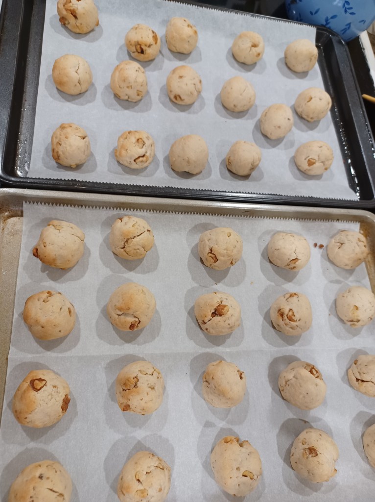 They are done and look very light brown. This is how they appear, and this is how they look after being sugared.