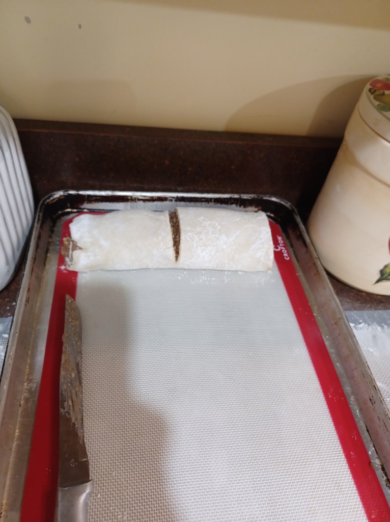 Wrap up your dough rectangle with plastic wrap and chill for a few hours. You can also make the dough a day or two ahead and chill it till you are ready to bake.