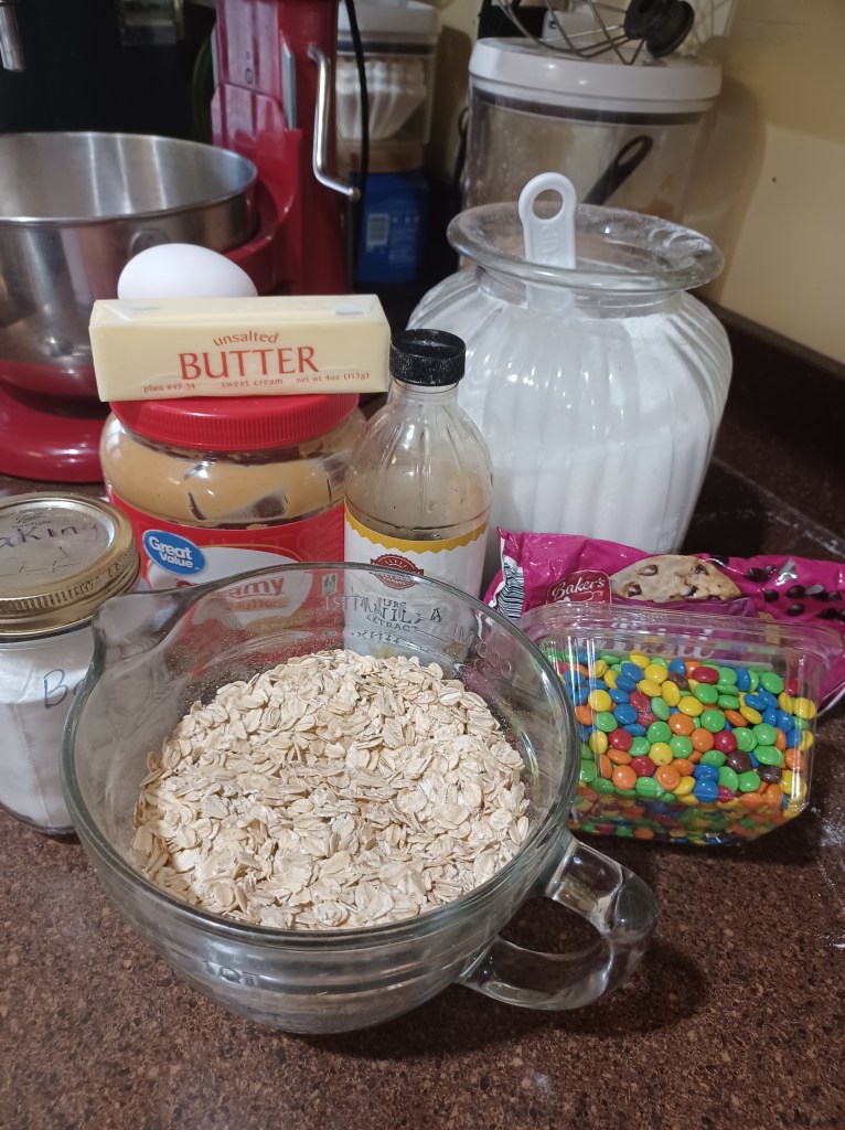 - 2 cups mini M&M’s to dip your cookies in