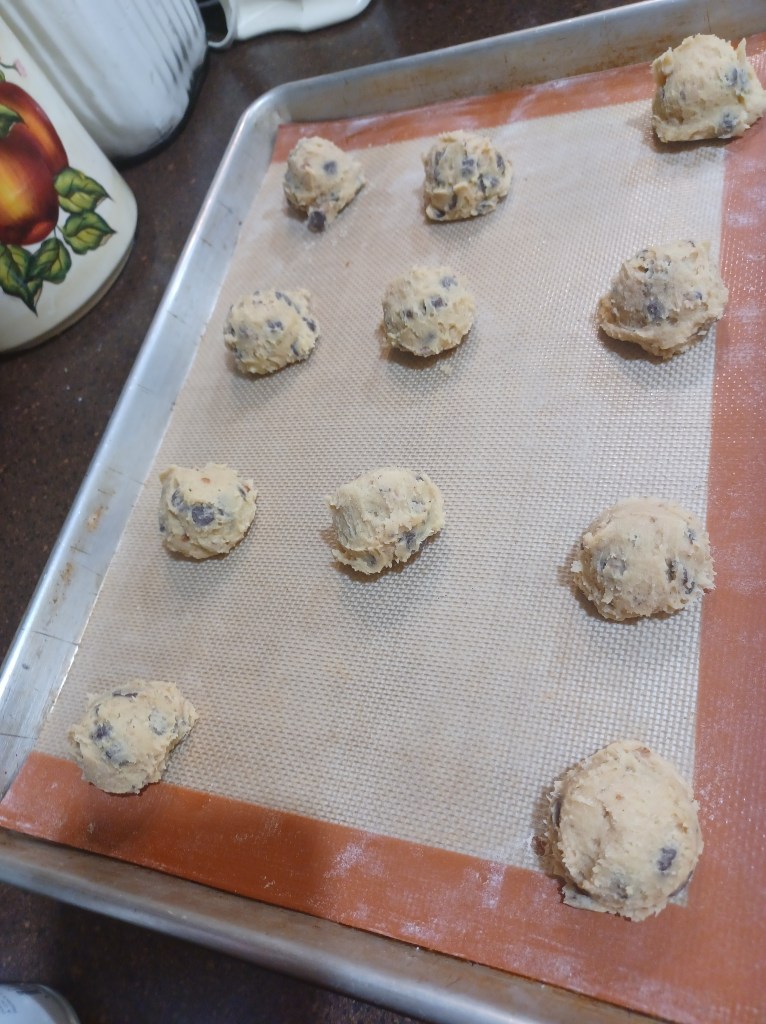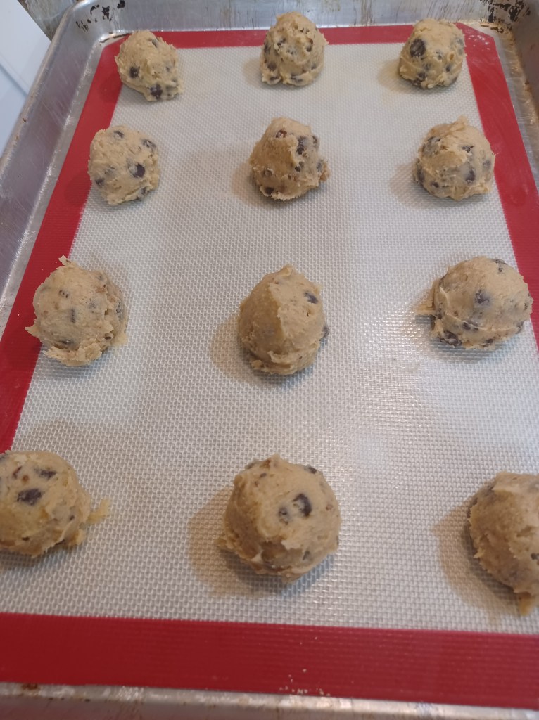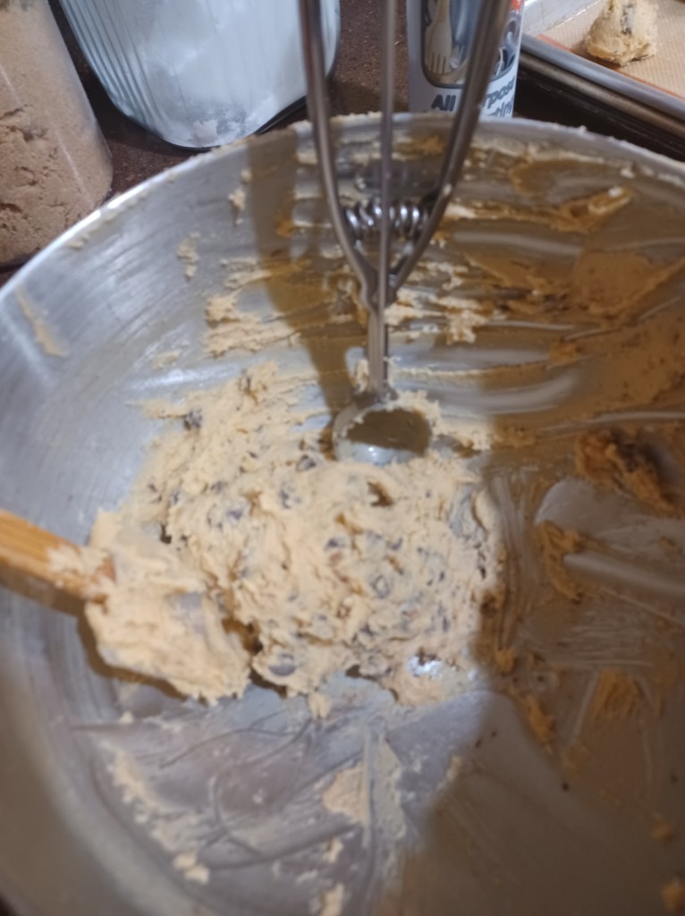 Now scoop your cookies, you will need 3 or 4 trays, depending on the size scoop you use.