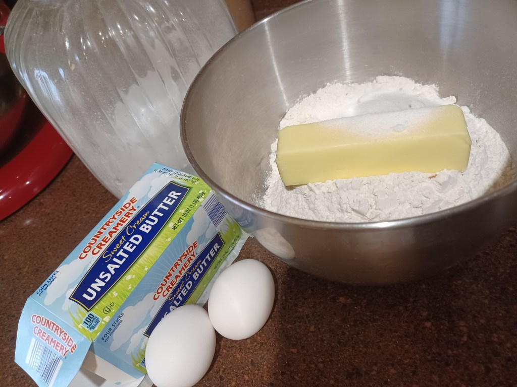 - 1 stick softened butter (3 more softened for later, lb. all total)