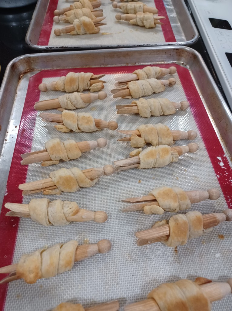 When you get them out of the oven, let them cool for a minute or 2 then carefully pull them off the clothespin.