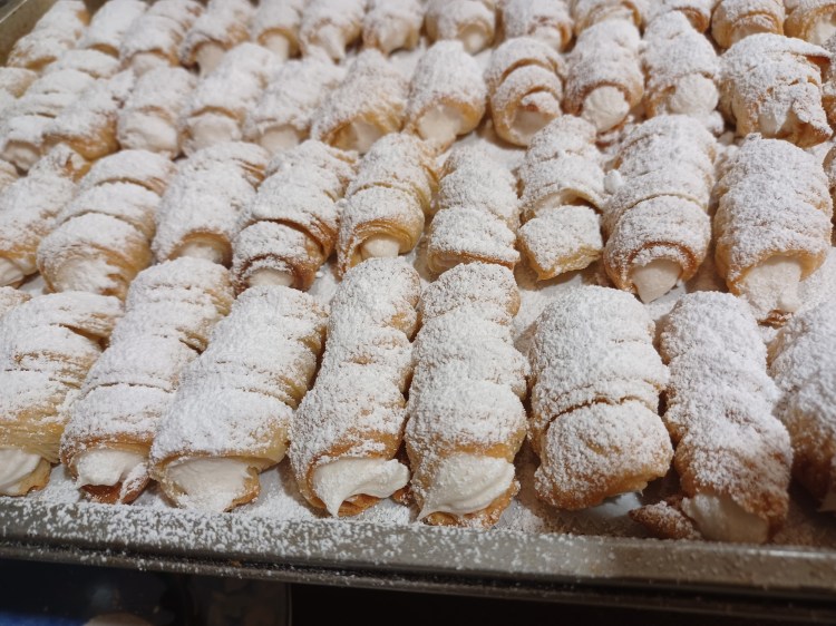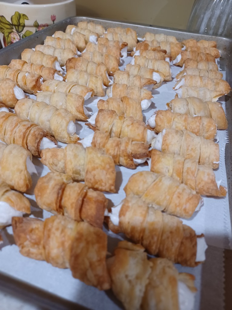Keep rolling till you have rolled out all 4 sections of dough. when you have 2 trays ready, you can bake them while you roll and cut the rest.