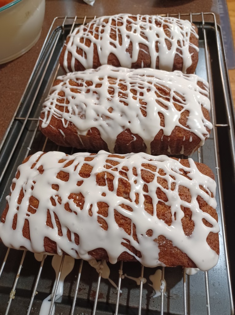 Cool the breads in a pan for about 10 minutes, then turn them out of the pan and place on a cooling rack. Cool completely.
