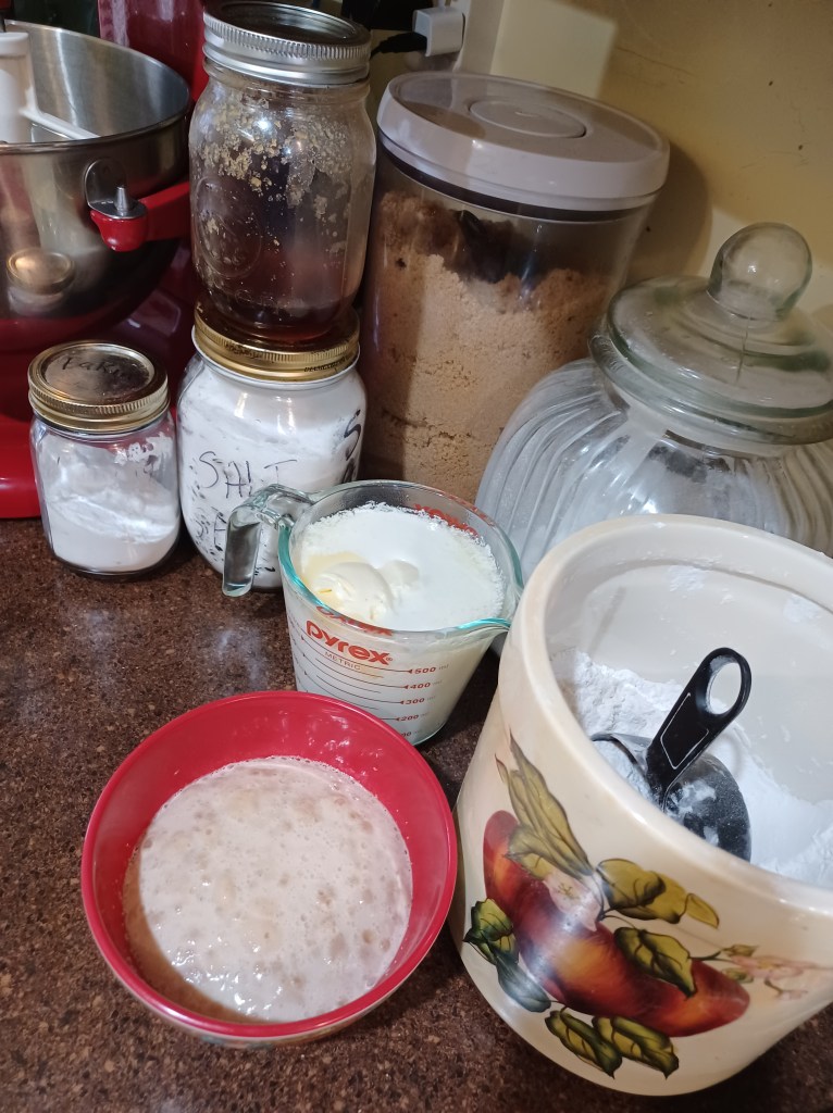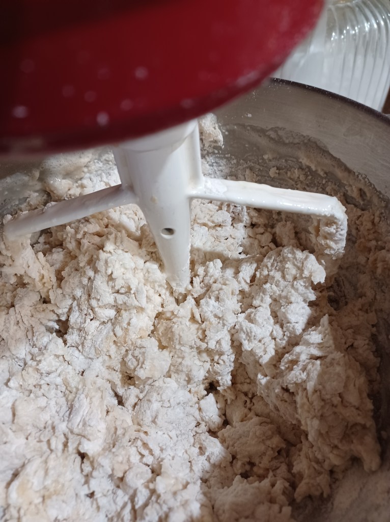 Add the flour, baking soda, salt, warm buttermilk, honey and melted butter to your mixer bowl. Now add the bloomed yeast mixture, blend well.
