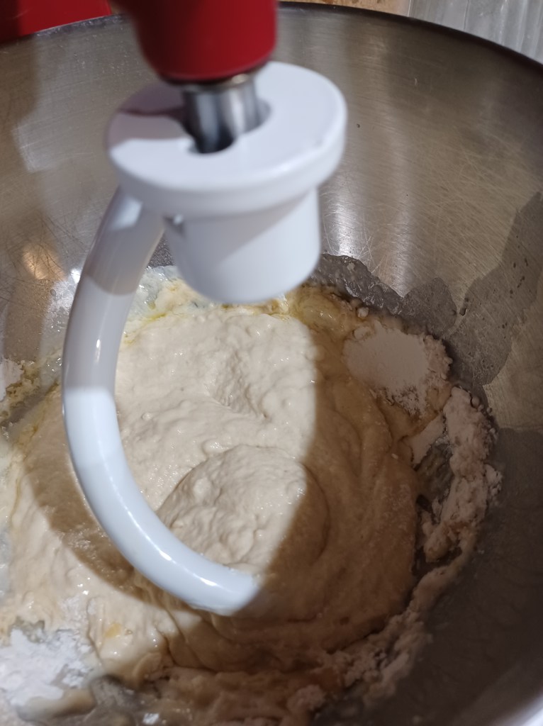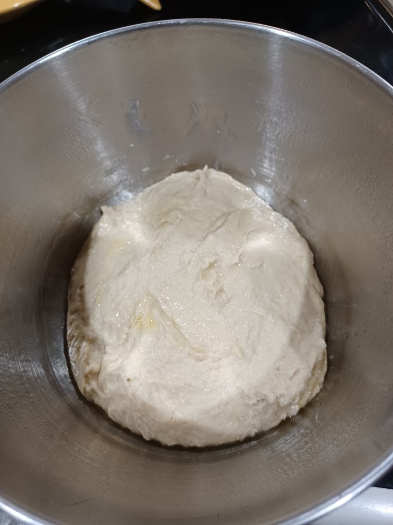 Place your dough hook onto your mixer, add all ingredients and mix till well incorporated, keep your speed at 2. When your dough is mixed, let it knead for about 5-10 minutes, till the dough is smooth. Now place the dough into an oiled bowl, cover with a cloth or plastic wrap to rise. I always use a dish towel. You do as you wish for this step.