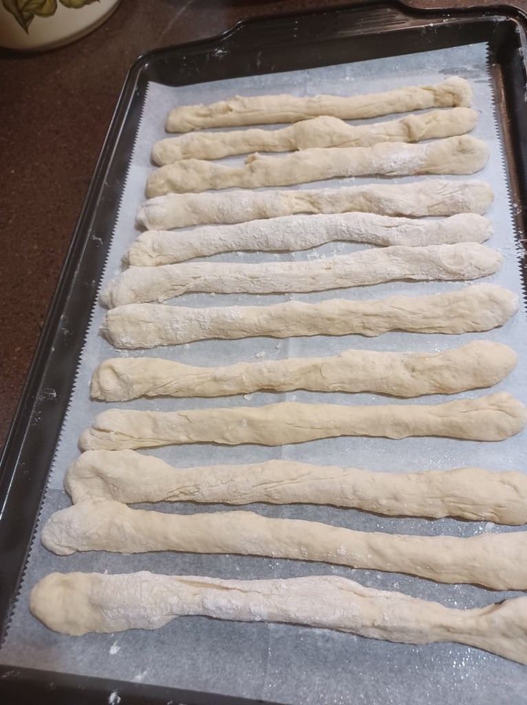 Now cover the sticks with your towel or plastic wrap. Let them rise till doubled.