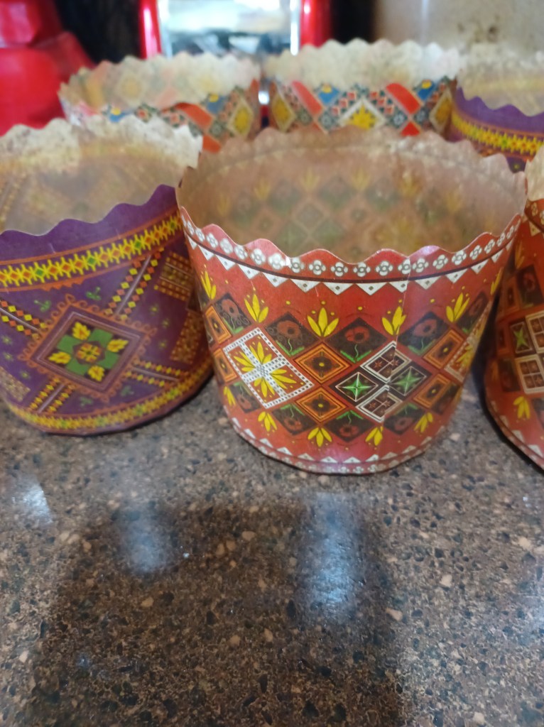 Paska is a Ukrainian Easter bread. I have several nephews that were adopted as young children from Ukraine, so I made this in honor of my sweet nephews. You can order the beautiful paper baking pots from Amazon. That is where I found them. This is a 7 ounce size and baked beautifully.