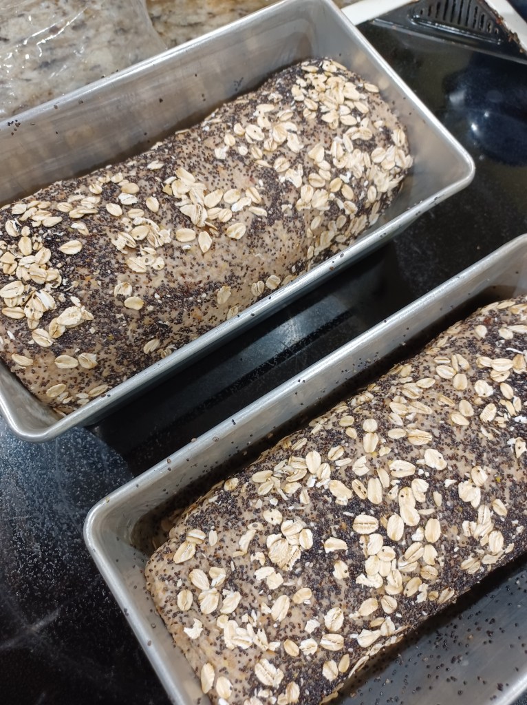 Now place each loaf into a pan, cover lightly with plastic and let rise till nearly doubled in size.