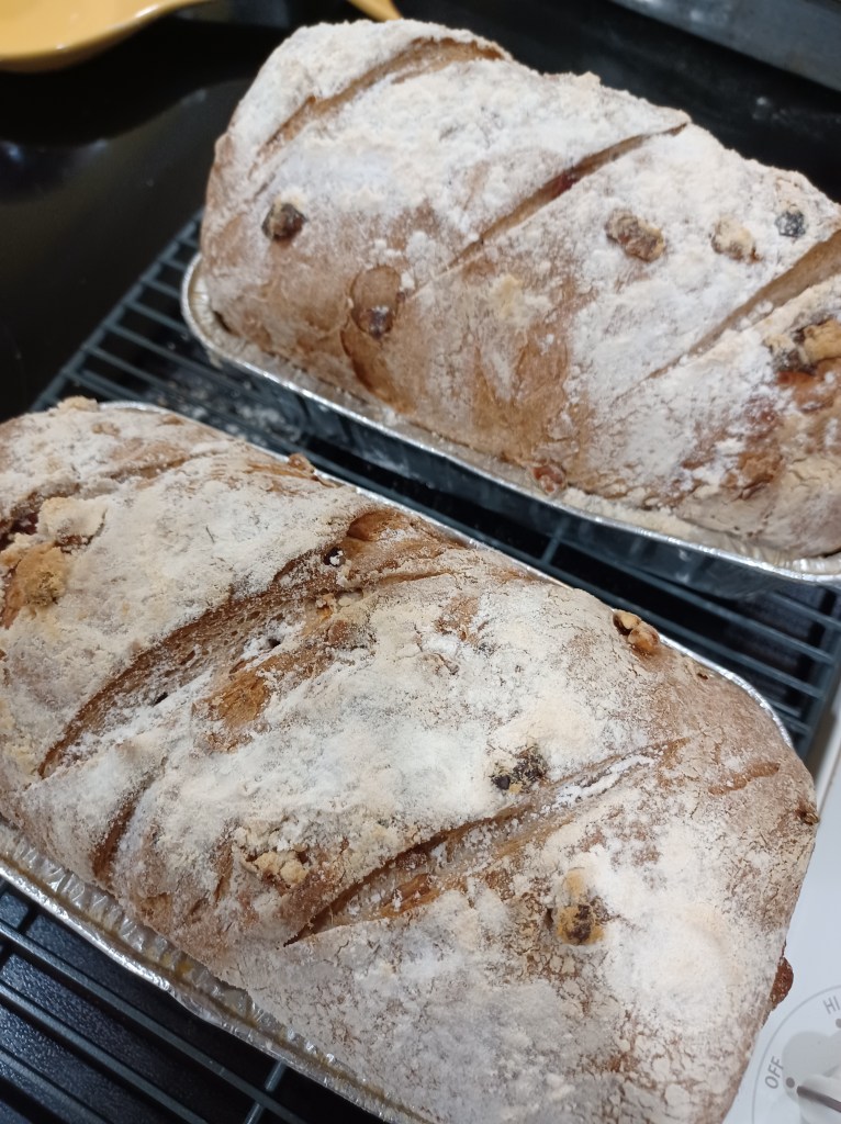 Lightly dust your loaves with flour then make 3 slices across the tops on the diagonal