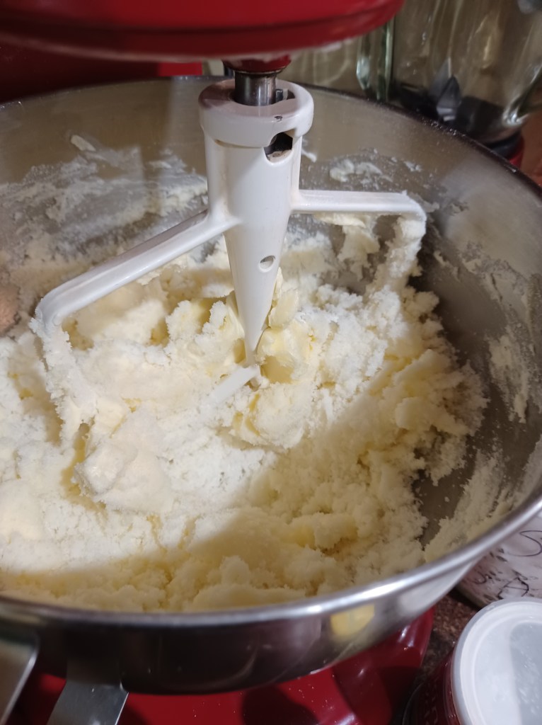 Now place your softened butter into your mixer bowl with the sugar. Blend till light and well incorporated