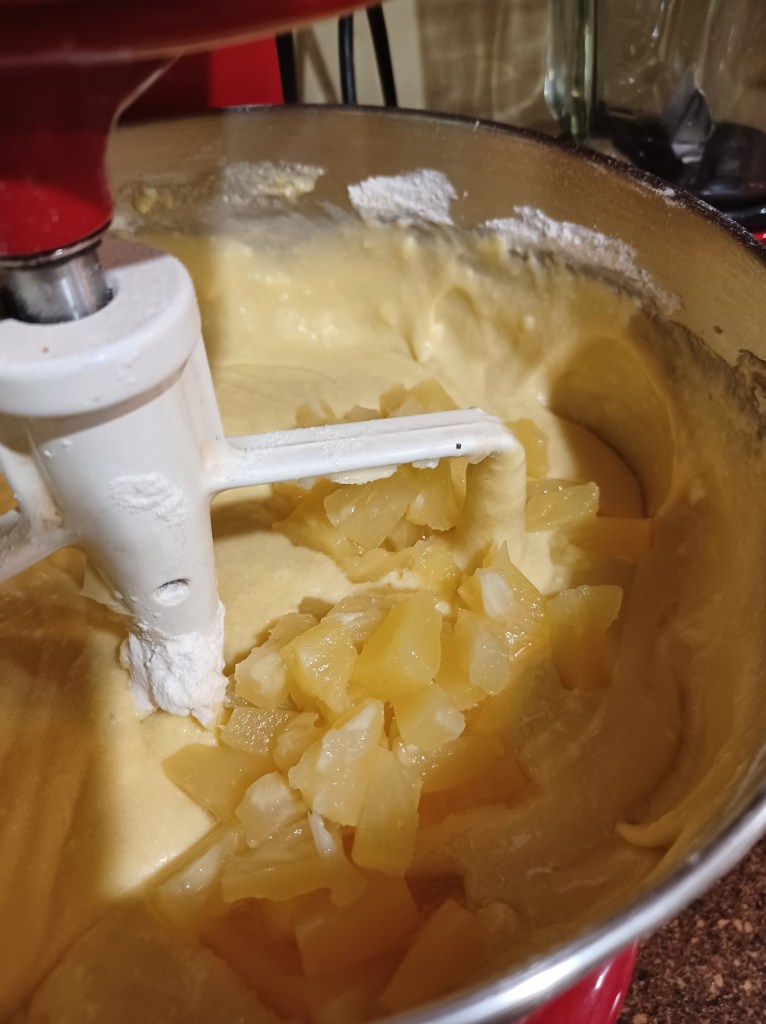 This is a delicious pound cake! Full of pineapple tidbits and coconut it will satisfy any pineapple craving! It is such a delicious cake, moist and full of great tropical flavors. I hope you will try this cake, you will love it!