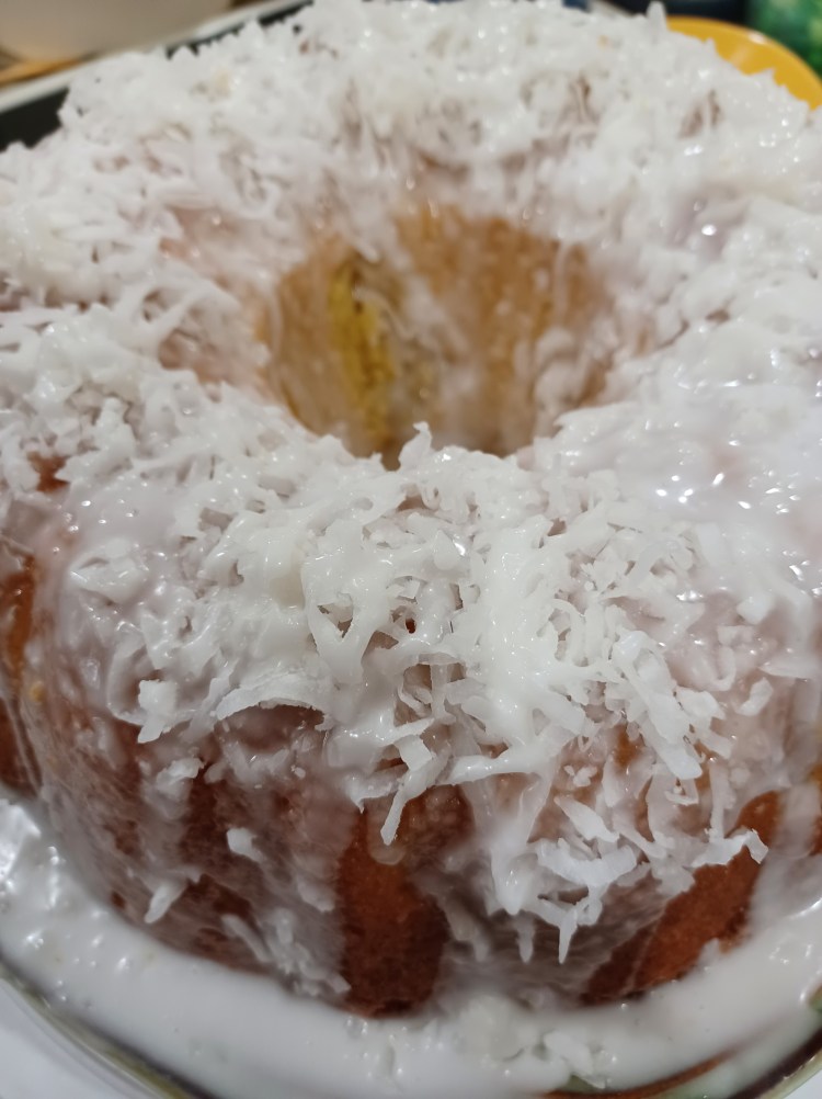 Now while the glaze is wet, put the coconut on, as much or as little as you like.