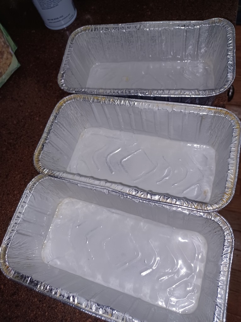Now spray 3 – 3 x 8 aluminum pans, set aside