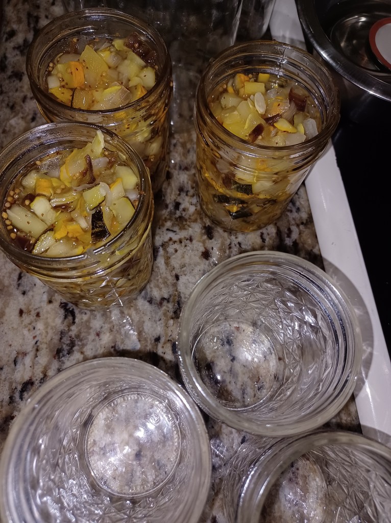 Now fill your prepared jars with the relish, leaving 1/4 inch headspace.