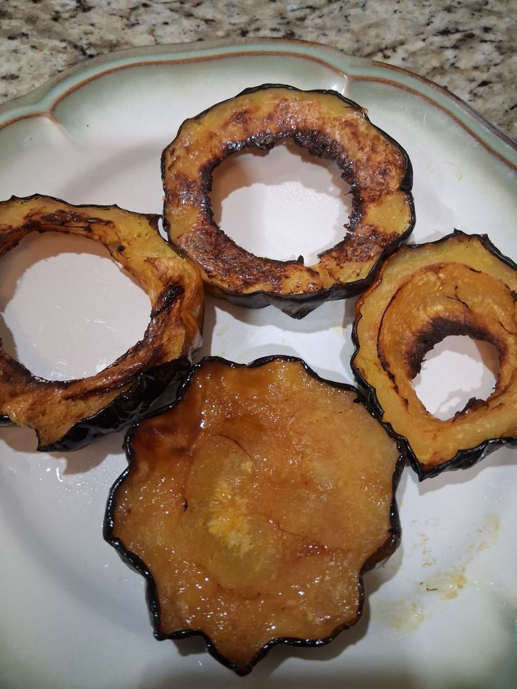 - 1 acorn squash (this will give you 4 slices, roast 2-3 more if you are having more guests)