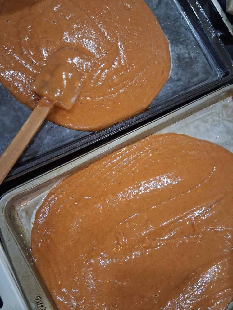 Spread it gently to fill the pan. (I was making 2 batches, you will have enough batter for 1 pan)