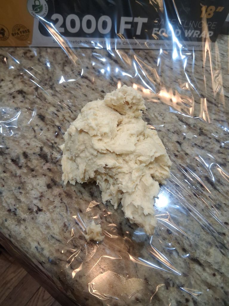 Now get your plastic wrap and place the dough on the plastic wrap.