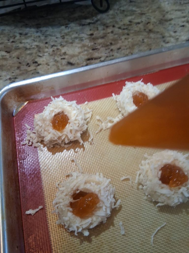 Now press you finger into the middle of the cookie to make a place for the jam.