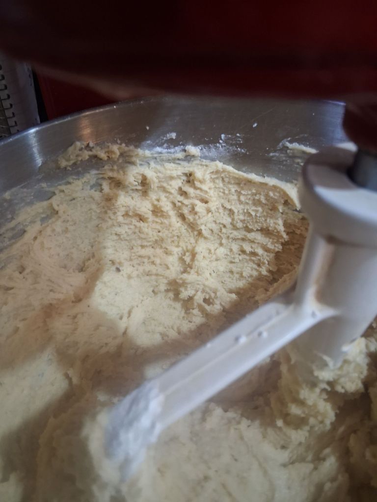 Place shortening and sugar into your mixer, mix together well.