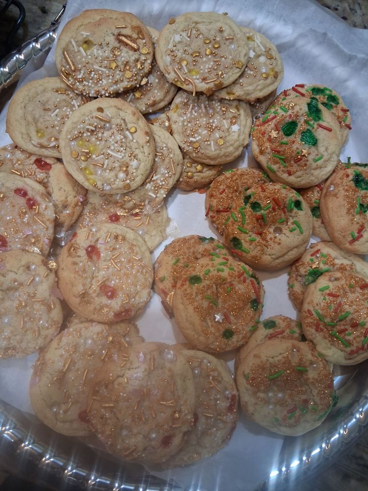 This is delicious old fashioned Nutmeg Sugar Cookie. They are so versatile and easy to adapt to many toppings, this time I used my fancy sprinkles!