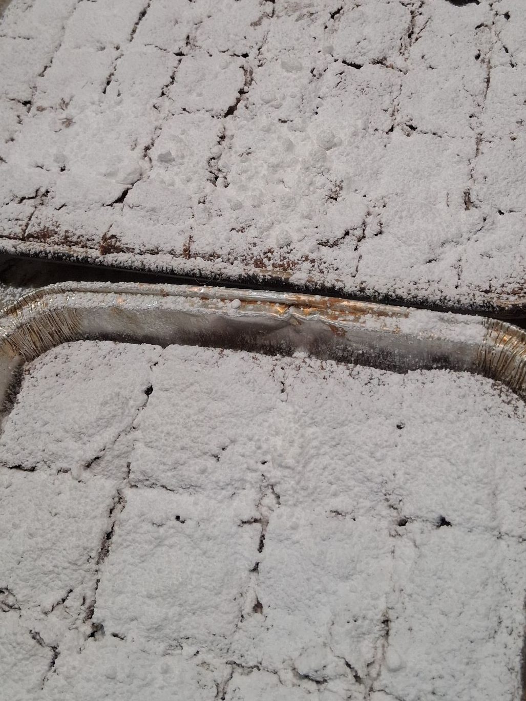Now let the bars cool down, when cool cut them into the size you want and coat them with powdered sugar in the pan, now let them cool completely.